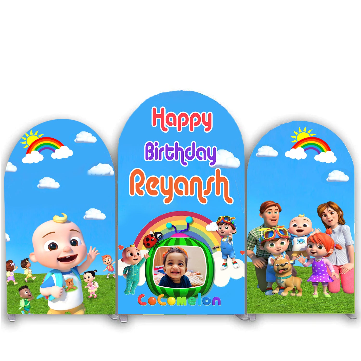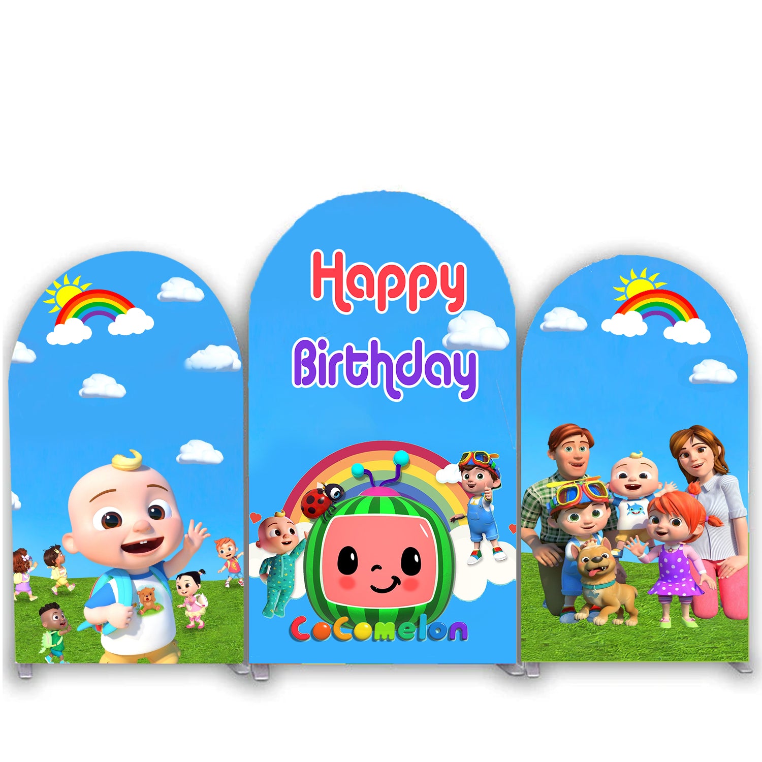 Size & Package: (Width) x (Height) 3pc Coco Melon Party Backdrop. To facilitate transport and packaging, items are sent folded.