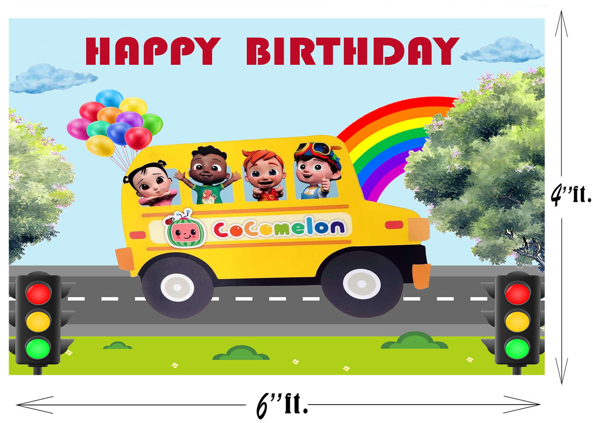 Size & Package: (Width) x (Height) 1pc Coco Melon Party Backdrop. To facilitate transport and packaging, items are sent folded.