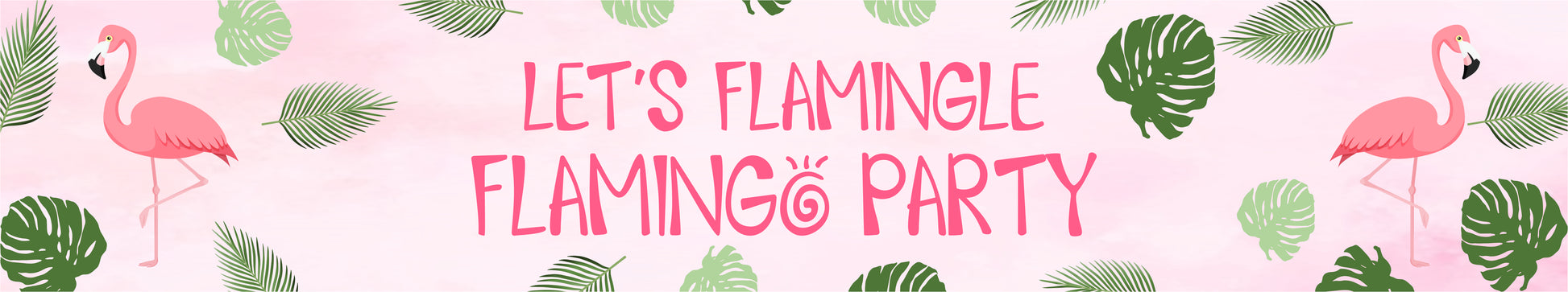 - Material -2 Foil Curtain -6 by 3 (height and width) shiny foil, long banner vinyl material, and size approx. Five by 1, Happy Flamingo Theme banner, Cupcake Topper & Hangings are made up of stiff paper. Tools like ribbon, glue dot, and swirls send along with it. Little assembly required.