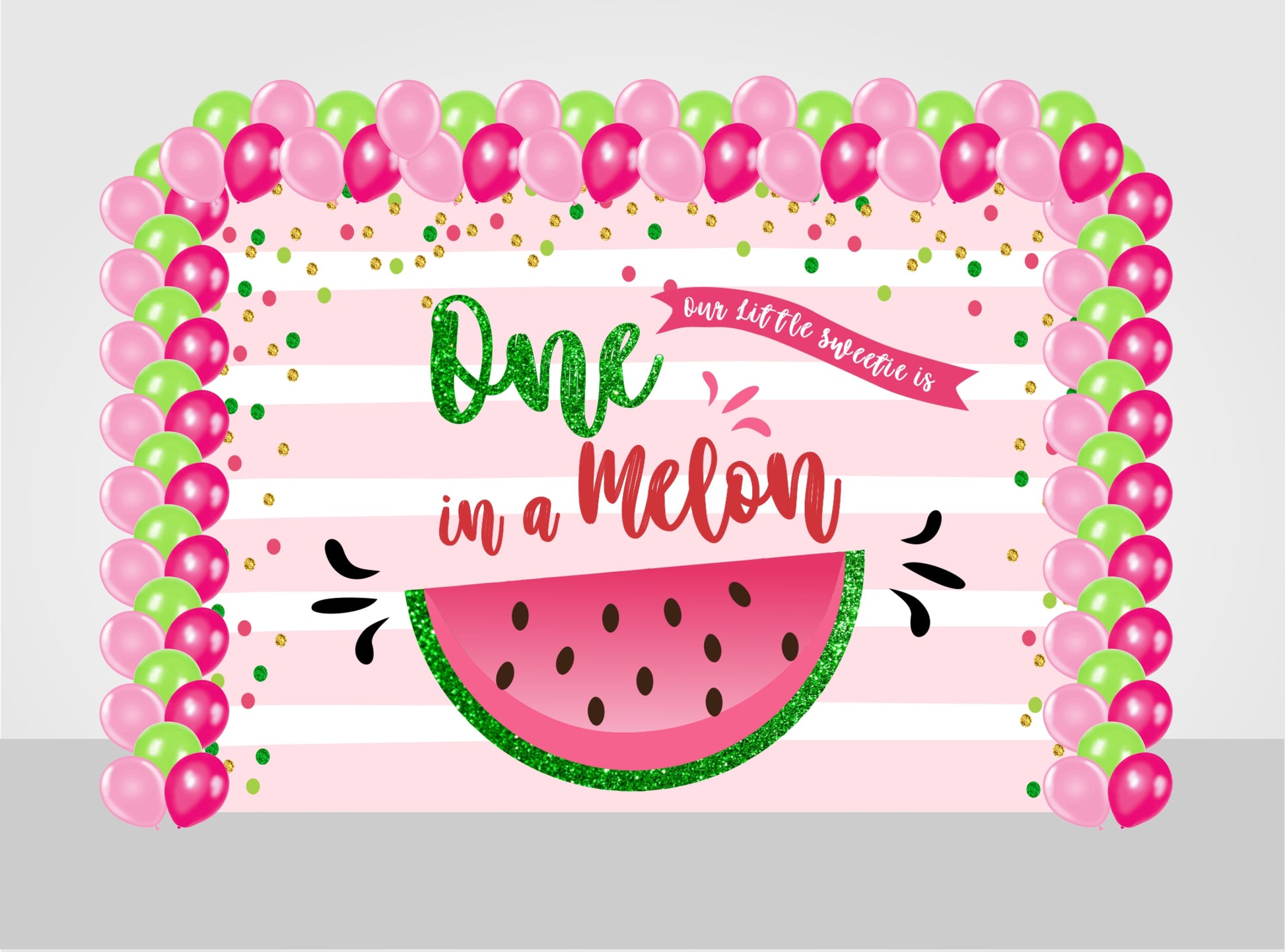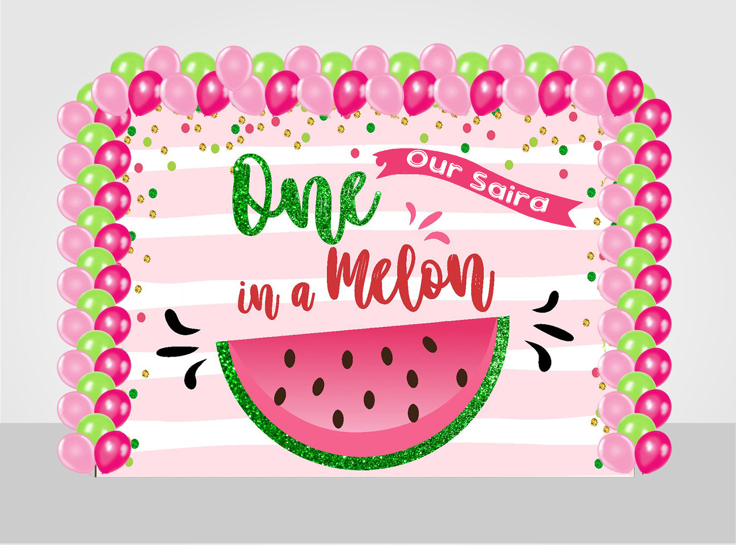 - Package Includes - Melon Theme Backdrop & Balloons. Total 50 balloons pink green and dark pink