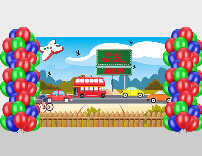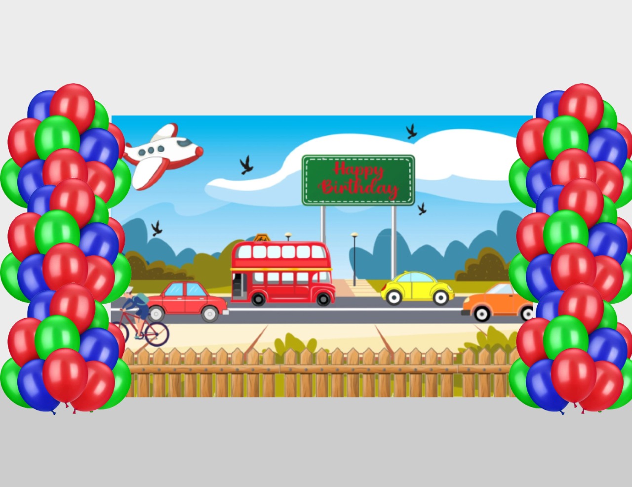 Transport Theme Decoration Kit With Backdrop And Balloons