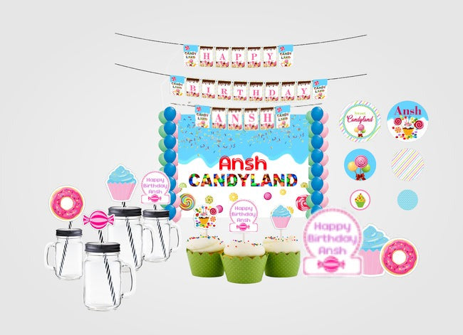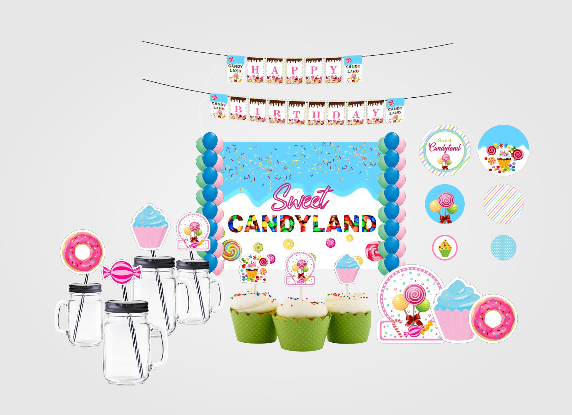 Candyland Theme Birthday Party Complete Party Kit with Backdrop & Decorations