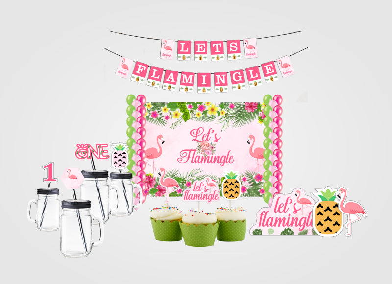 Flamingo Theme Birthday Complete Party Kit with Backdrop & Decorations