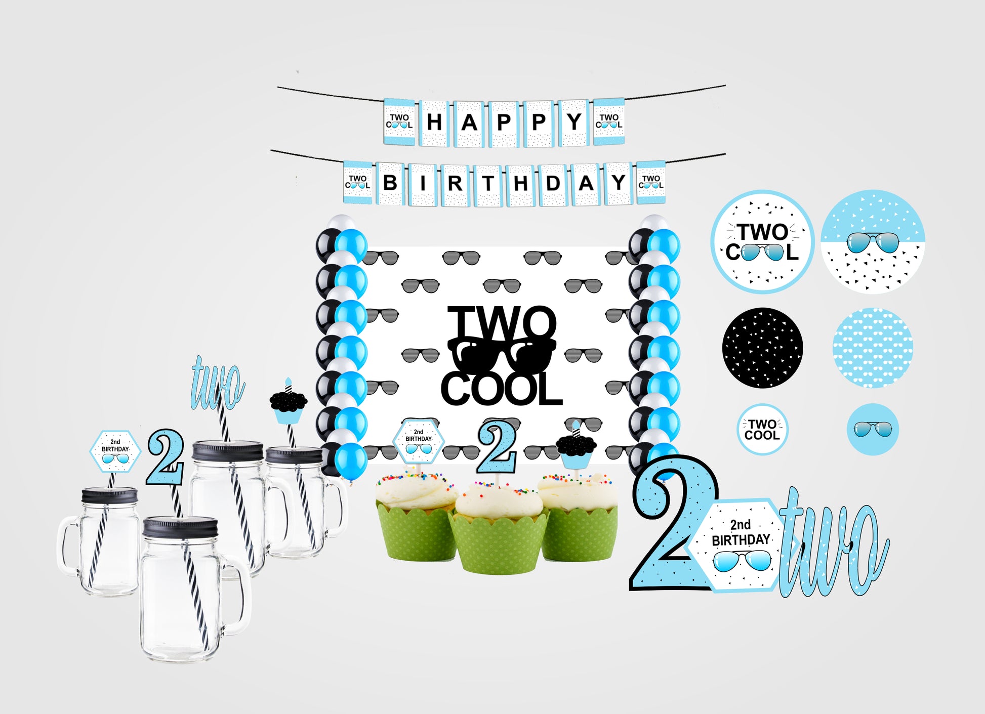 Two Cool Theme Birthday Complete Party Kit with Backdrop & Decorations