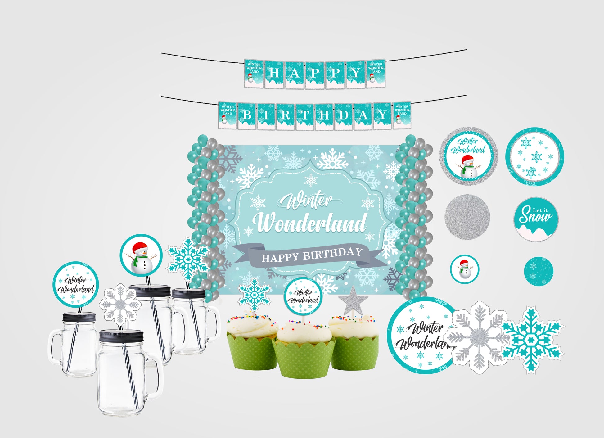 Winter Wonderland Theme Complete Party Kit with Backdrop & Decorations