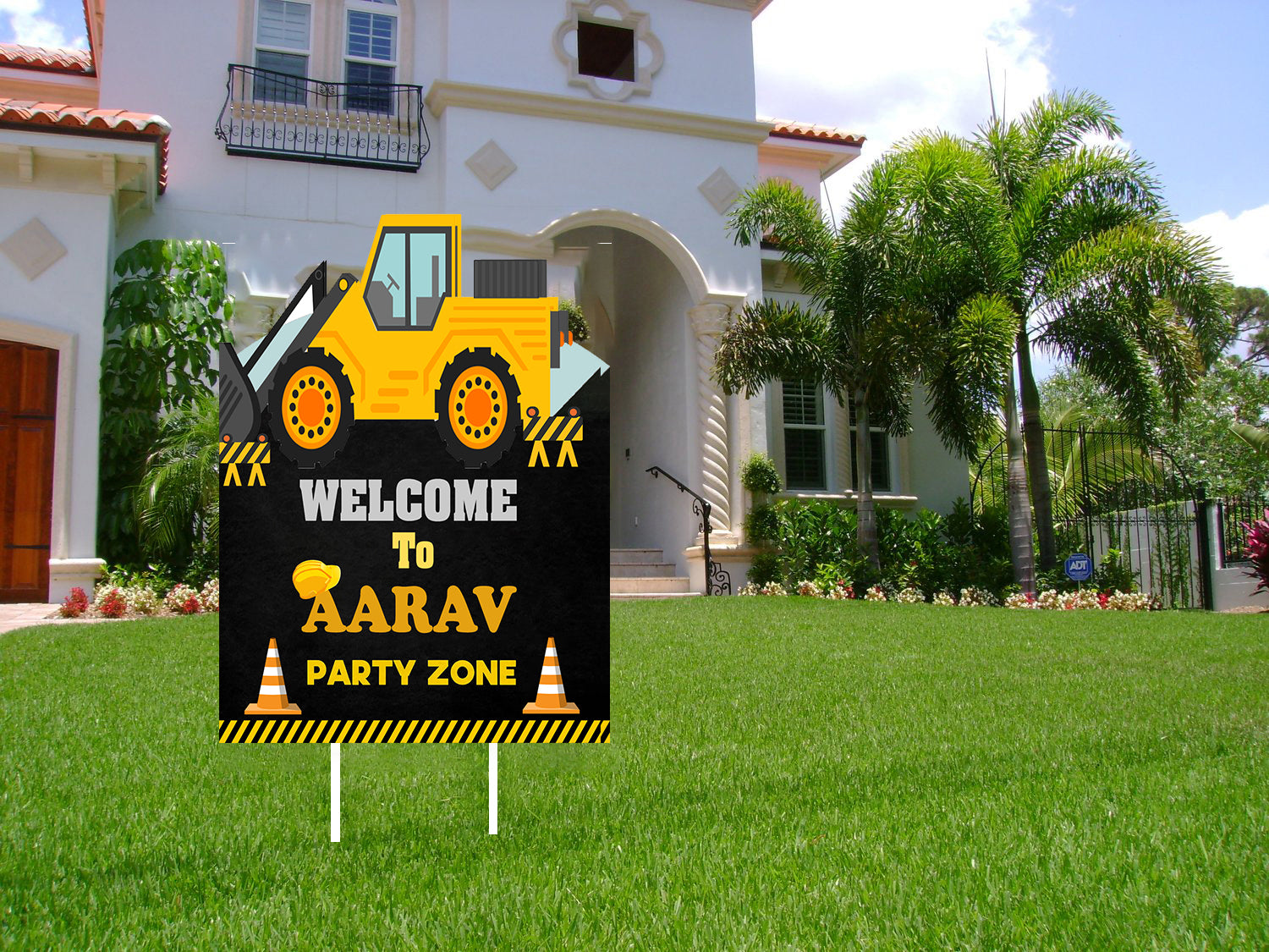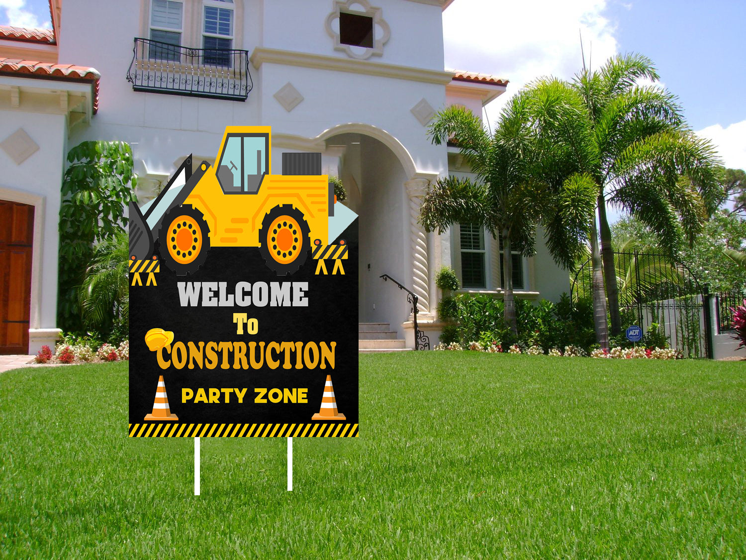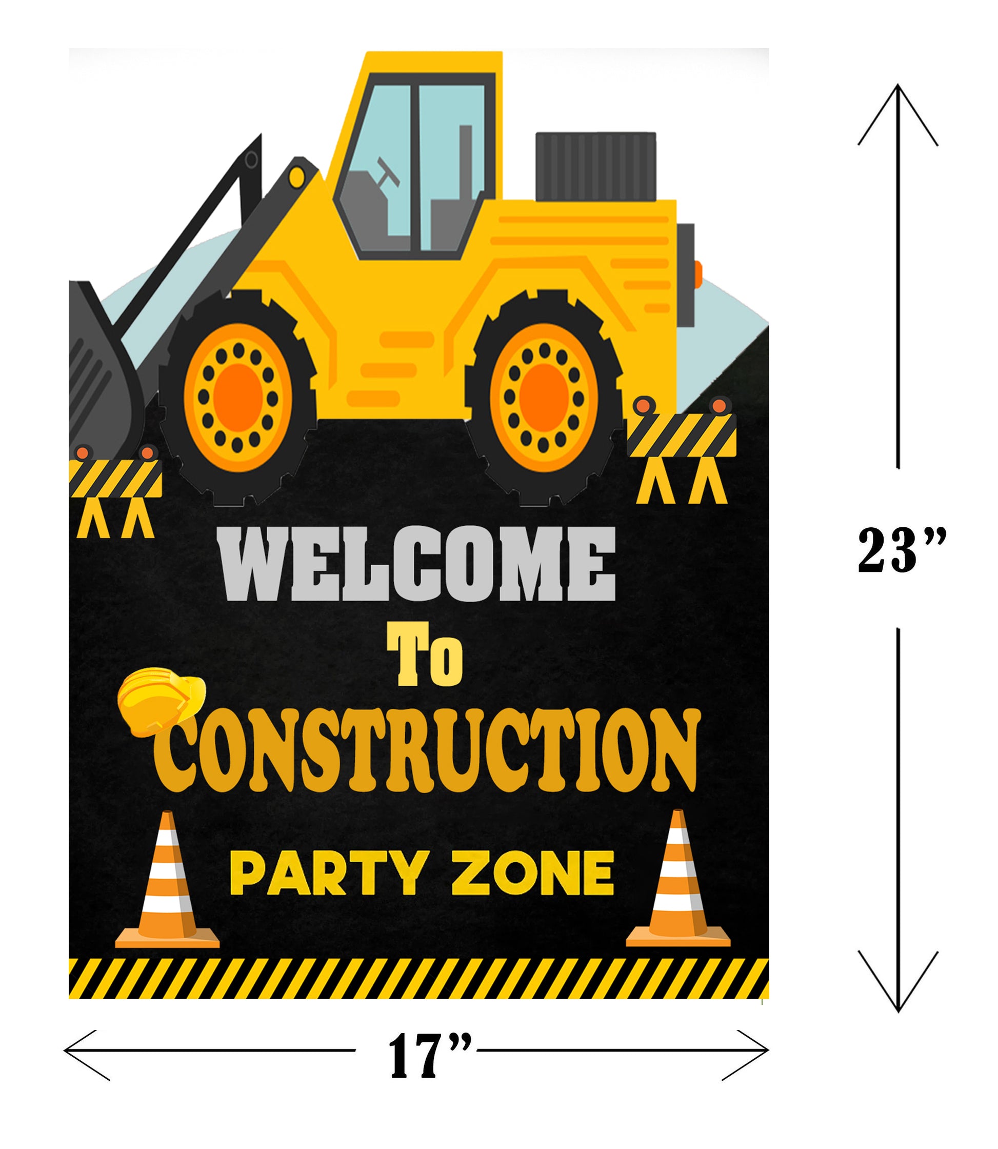 - The Construction Birthday theme Welcome board sign is ideal for any home location or outside space. Welcome your friends and family members with a stunning welcome birthday party board.