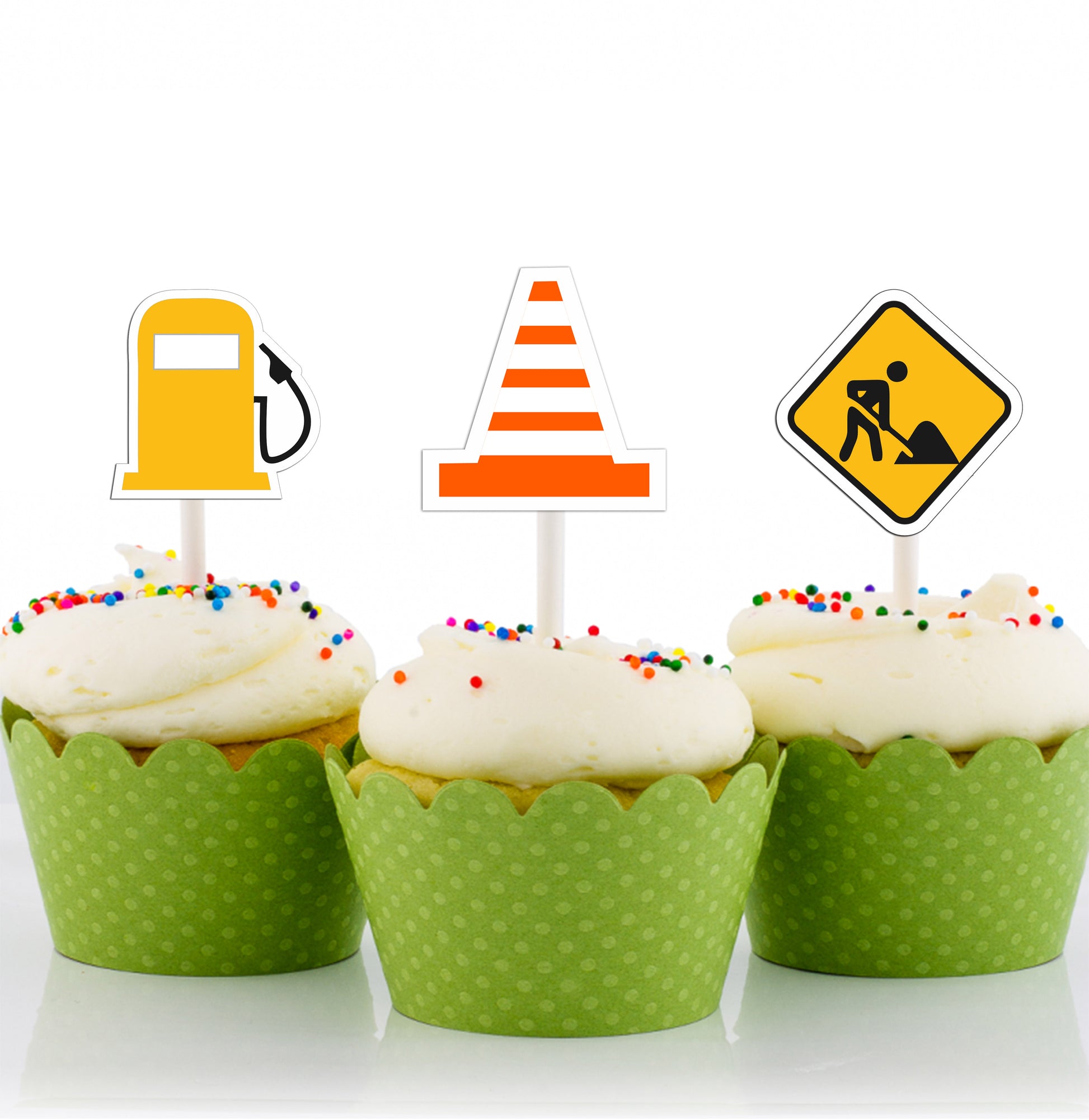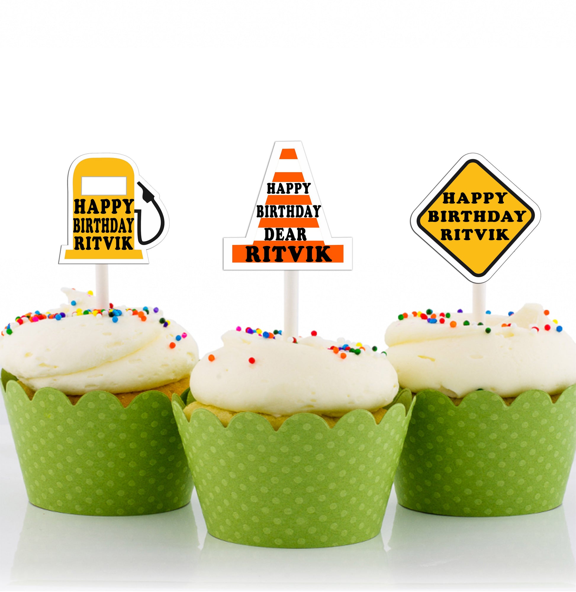 - Construction Birthday Theme Cup Cake Topper specially designed with three different designs.
