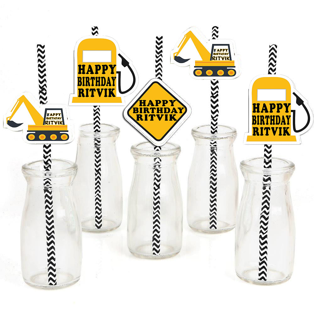 - The package includes - 24 Construction-birthday-theme-birthday-party-paper-decorative-straw-3 Birthday theme paper cut-outs, 25 coordinating paper straws & a glue dot.