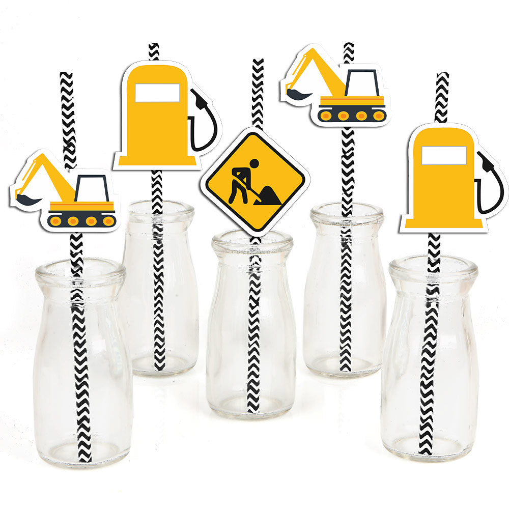 - Construction-birthday-theme-birthday-party-paper-decorative-straw-3 Birthday straw décor will add a touch of style to your birthday party tables. Straw décor will also look great at your beverage table.