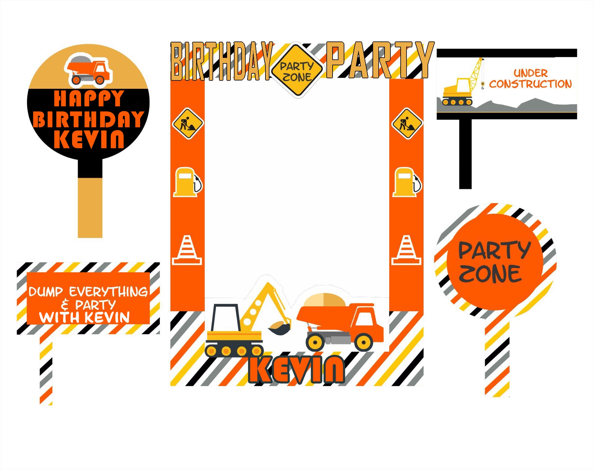 Construction Birthday Party Selfie Photo Booth Frame & Props