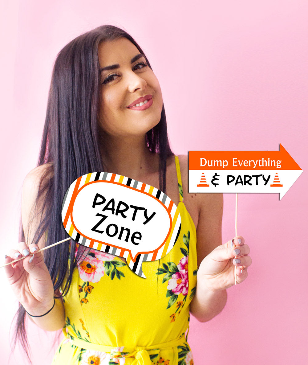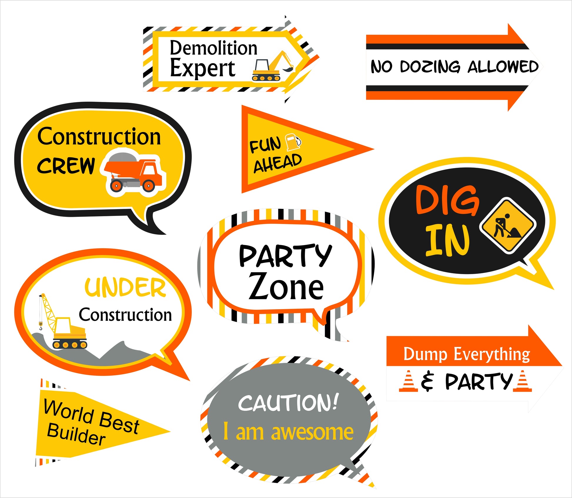 - Construction-birthday-theme-birthday-party-photo-booth-props-kit-6 Birthday Theme photo prop pack accompanies 20 pieces and will add fun for kids and adults. Take entertaining party photos while making memories with these photo booth props. Everyone will adore the fun photographs they will take with these excellent props.