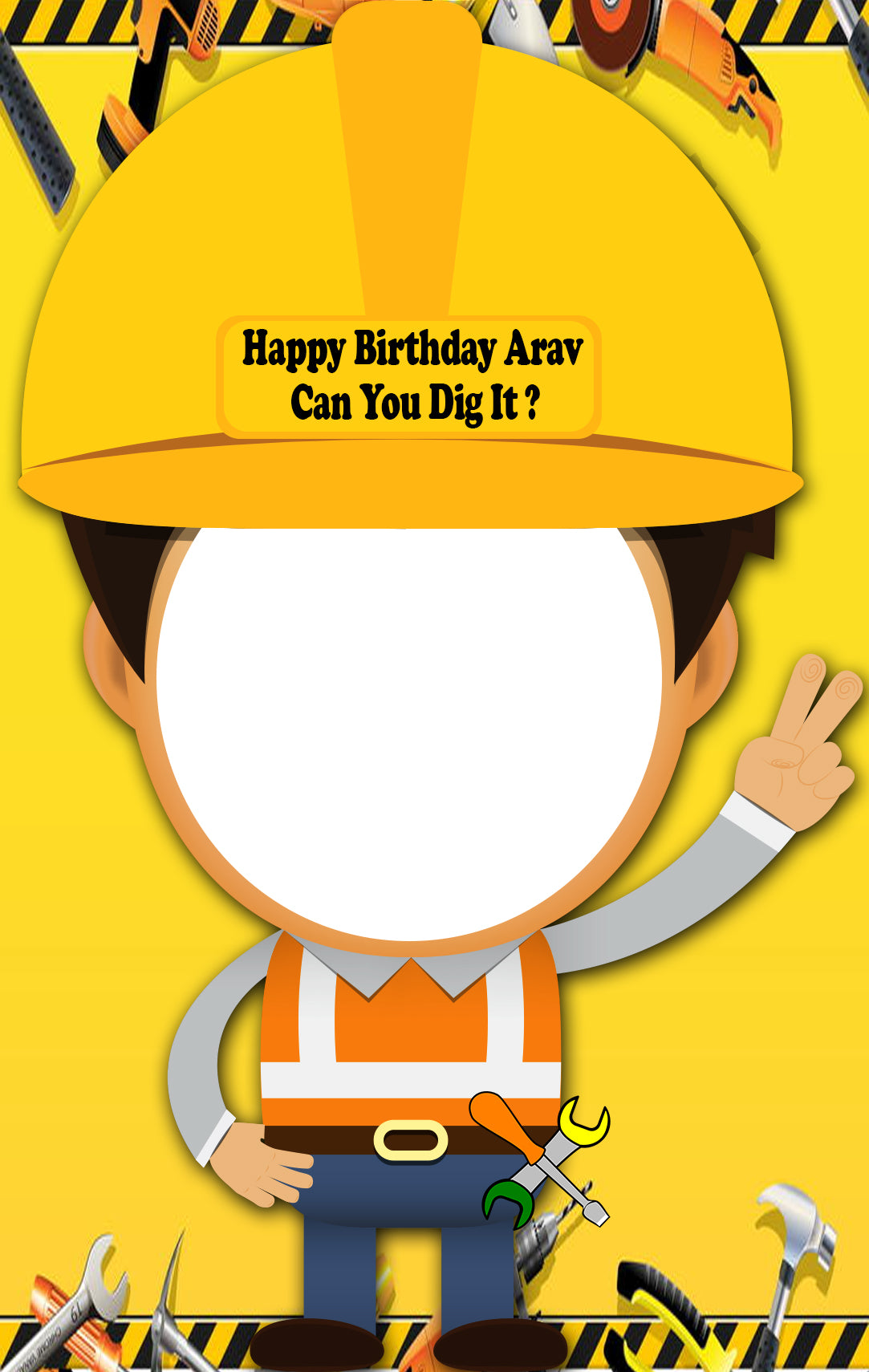 Construction Theme Birthday Party Selfie Photo Booth Frame