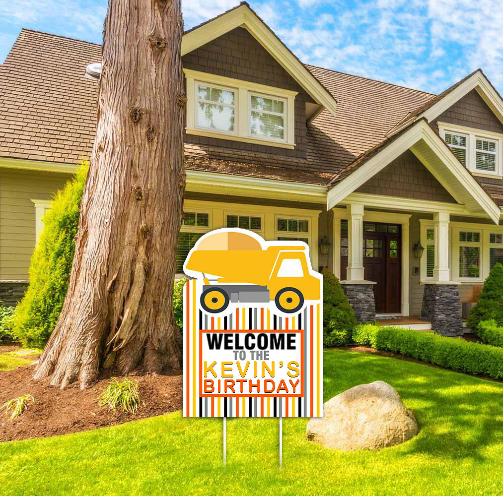 - The Construction Birthday theme Welcome board sign is ideal for any home location or outside space. Welcome your friends and family members with a stunning welcome birthday party board.