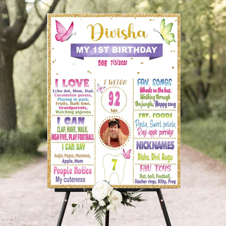 1st Birthday Customized Chalkboard Milestone Board for Kids Birthday Party