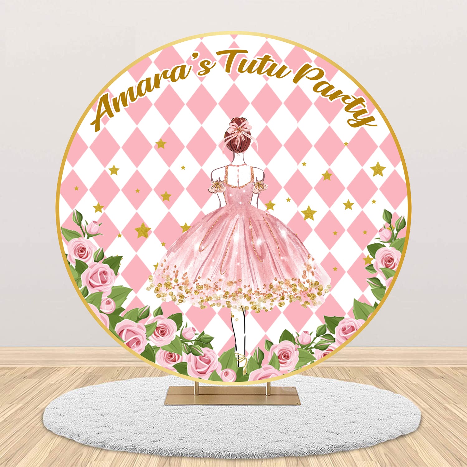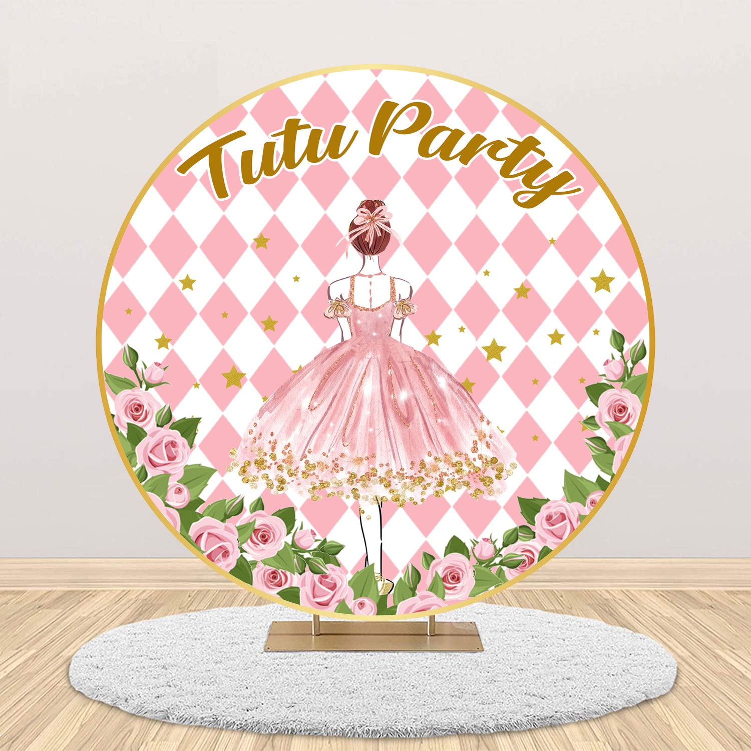 Ballerina Theme Round Birthday Party Backdrop