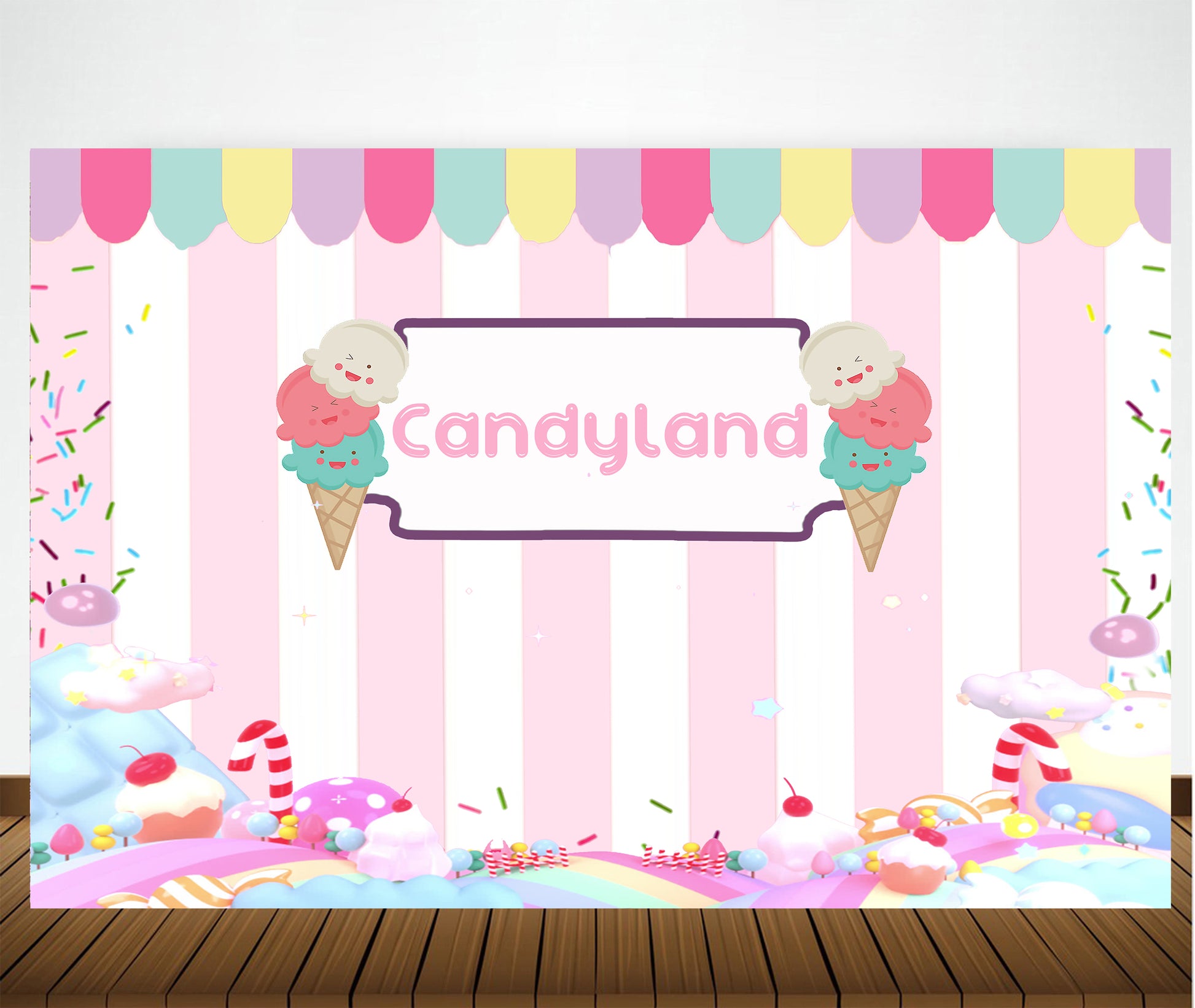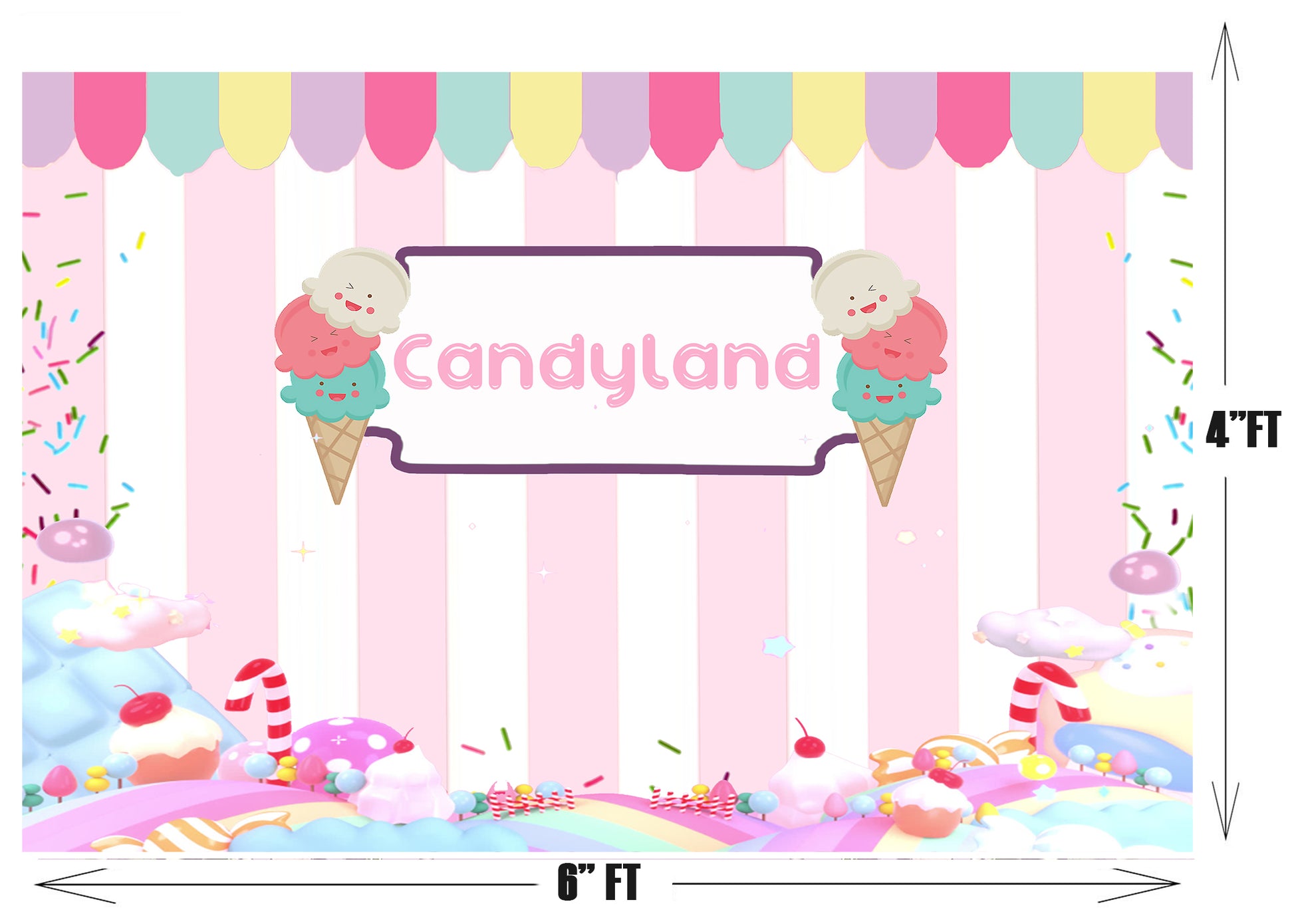 - Size & Package: (Width) x (Height) 1pc Candy Land Party Backdrop. To facilitate transport and packaging, items are sent folded.