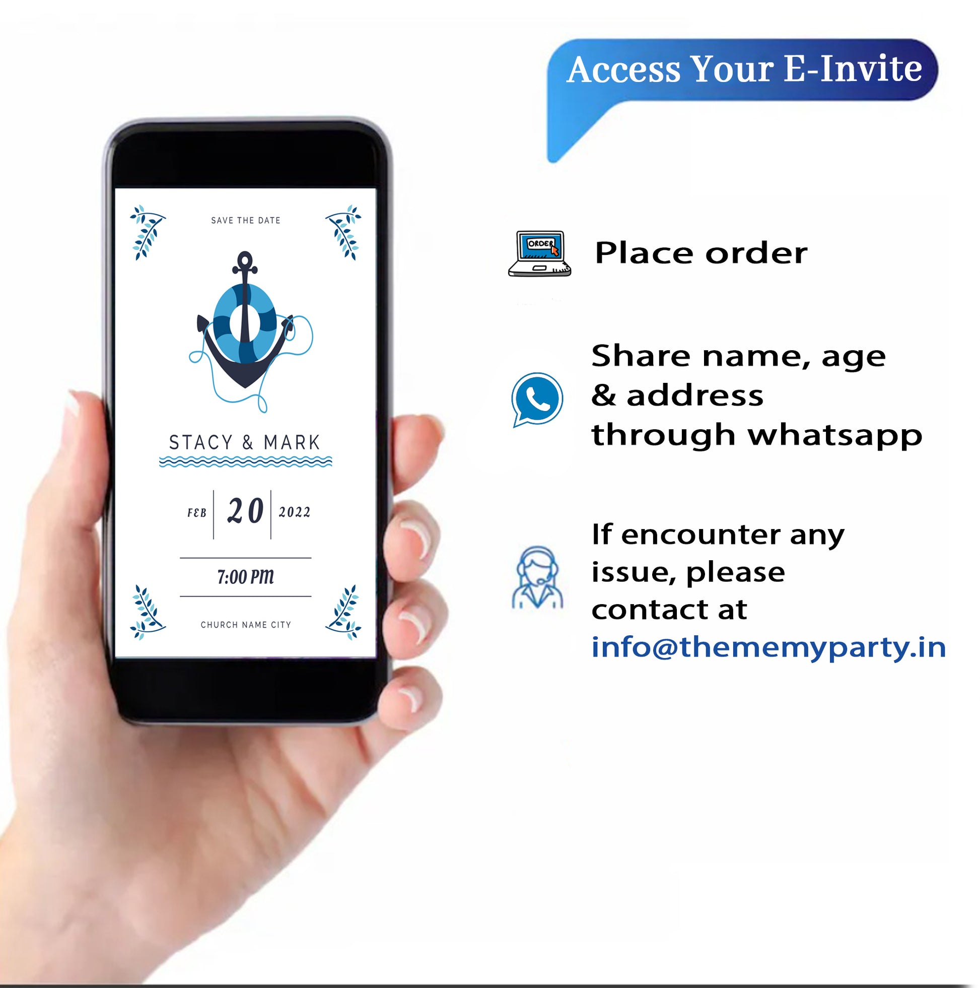 Option 1 - Soft Copy - You can go for digital softcopy of the invitation. We will edit Name, Address, Age, Location etc and share the soft copy