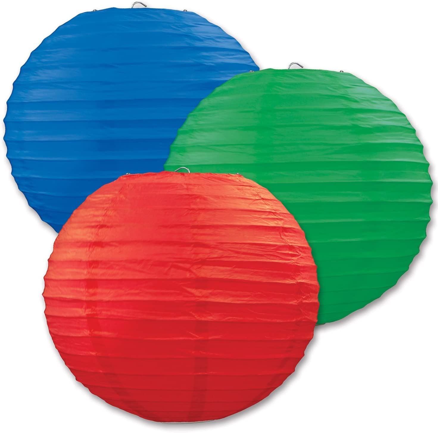- SPECIFICATIONS -Red Blue and Green color paper lanterns per pack (12 Inch diameter)