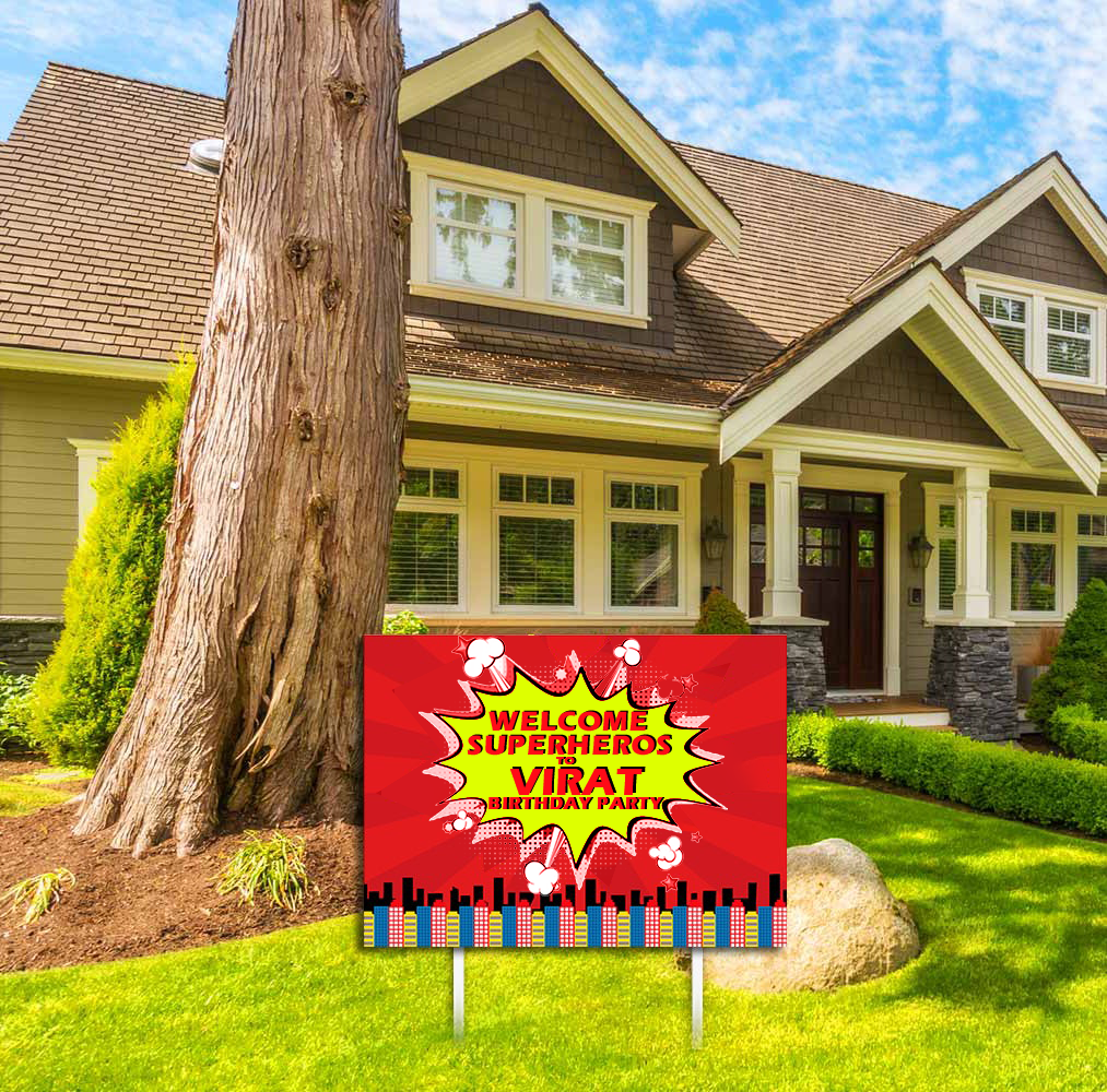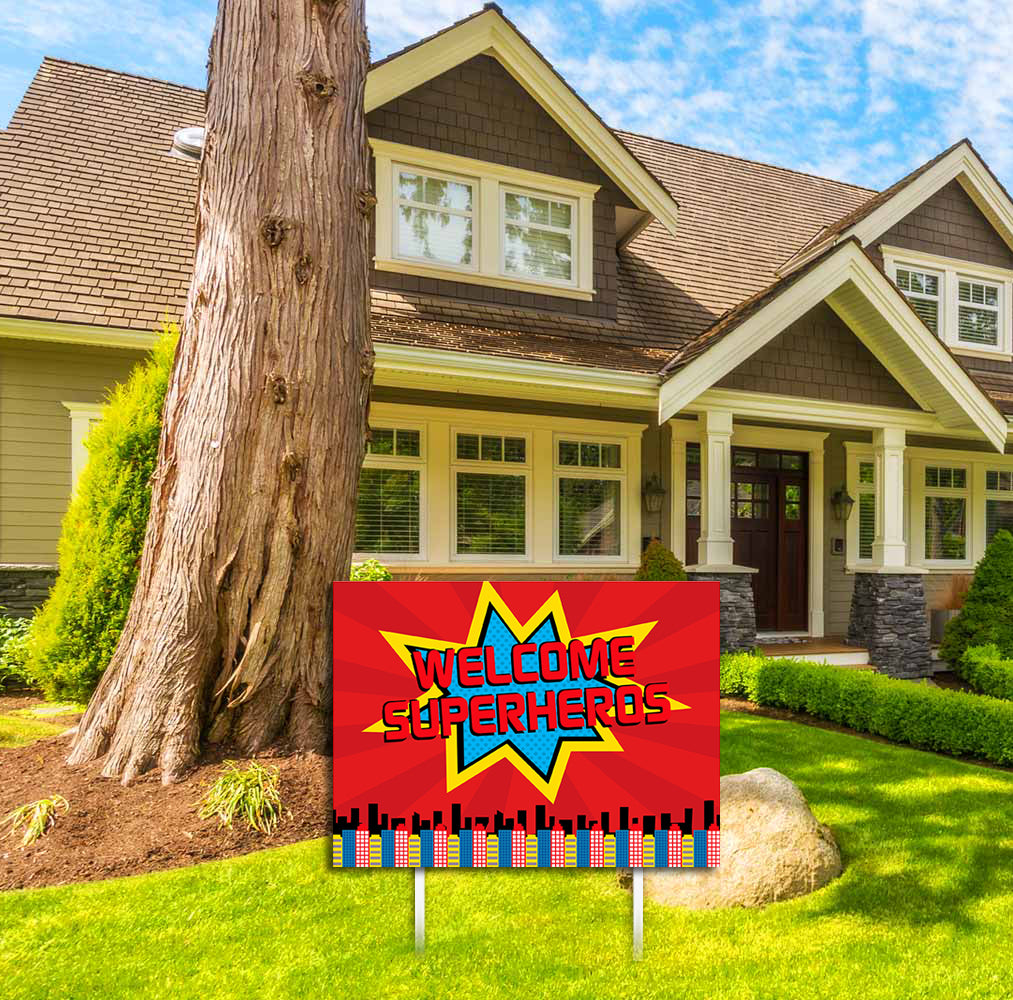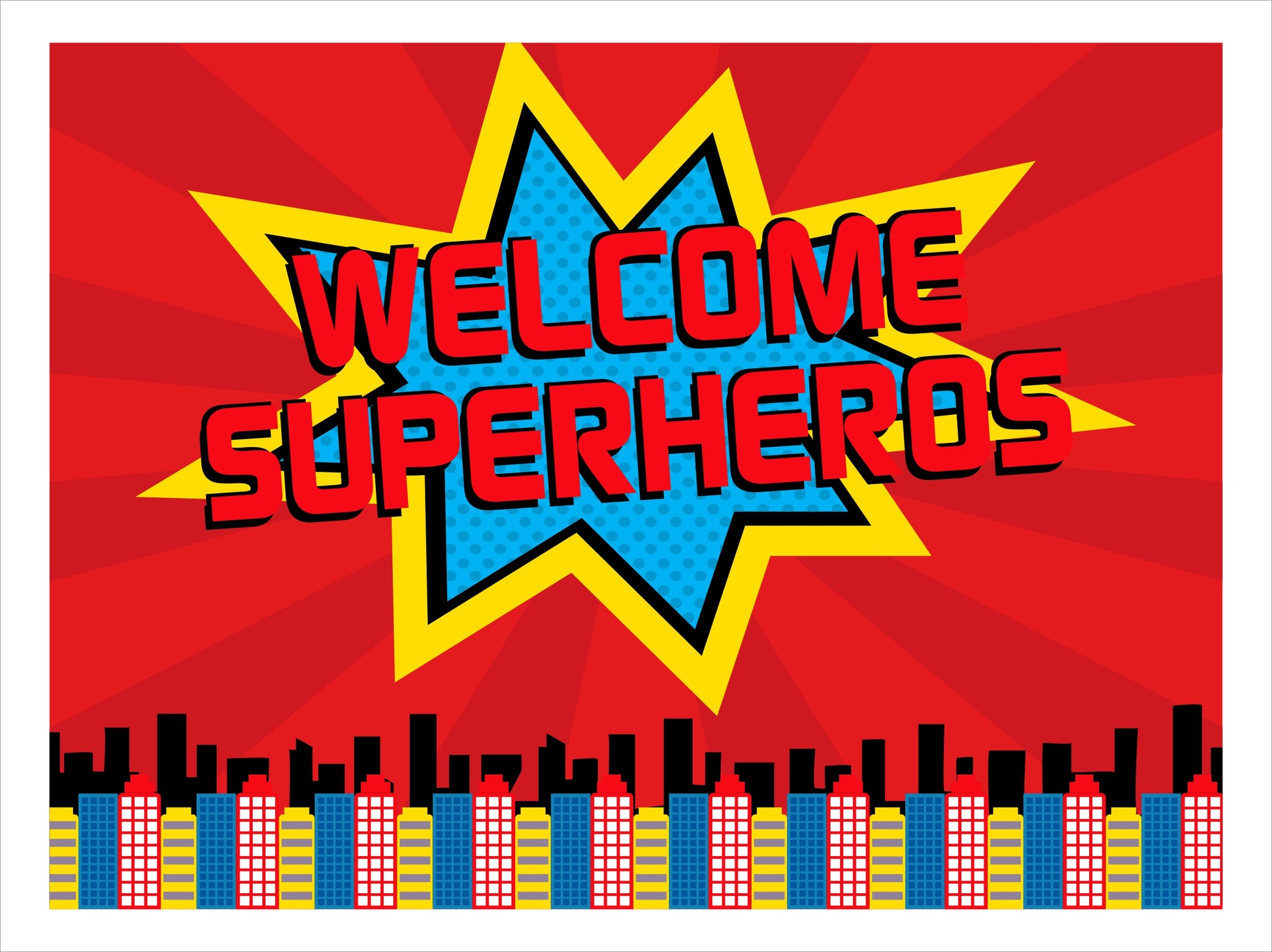- The Super Hero theme Welcome board sign is ideal for any home location or outside space. Welcome your friends and family members with a stunning welcome birthday party board.