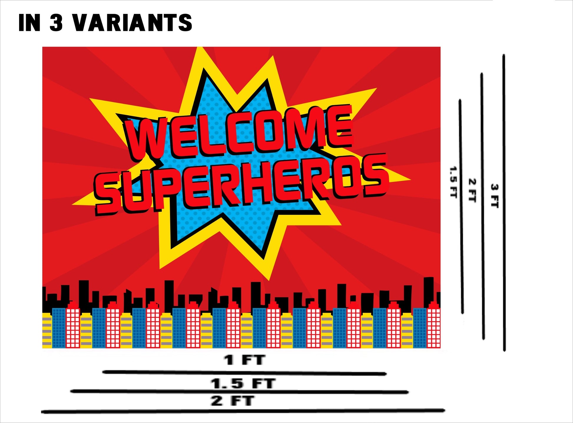 - Material: - Super Hero theme welcome signboard is made of high-quality vinyl print pasted on a 3mm sun board.
