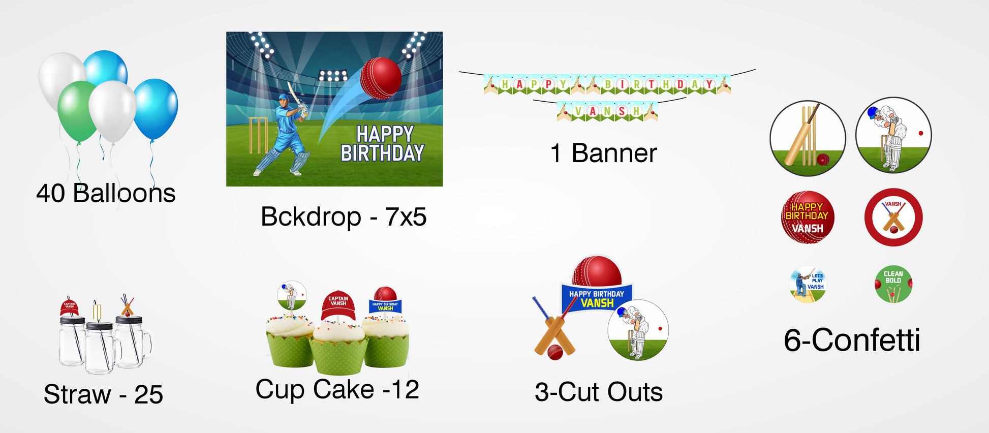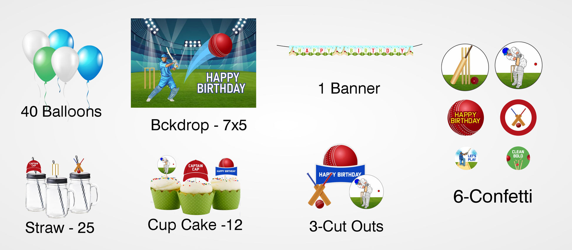 Cricket Theme Birthday Party Combo Kit with Backdrop & Decorations