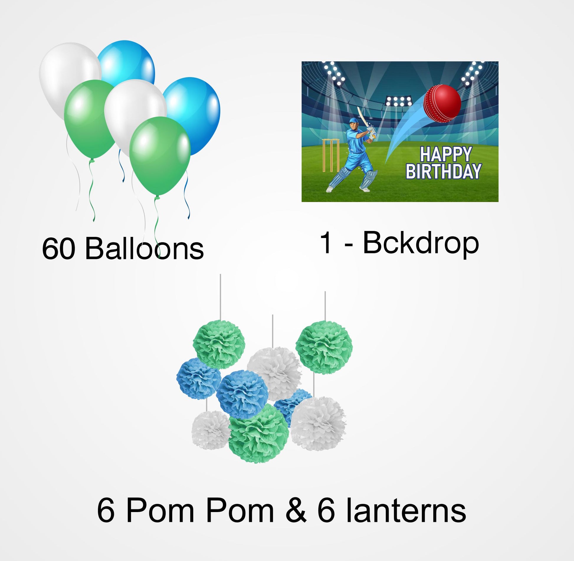 - Package includes - Backdrop-flex material light and thin, Balloons- 60 pcs Metallic 20 pc each Green, Blue and White and six pc Pompom (2 each Green, Blue and white) and six pc paper Lantern ((3 each Green and white). All of the kits are useful for Birthday party.