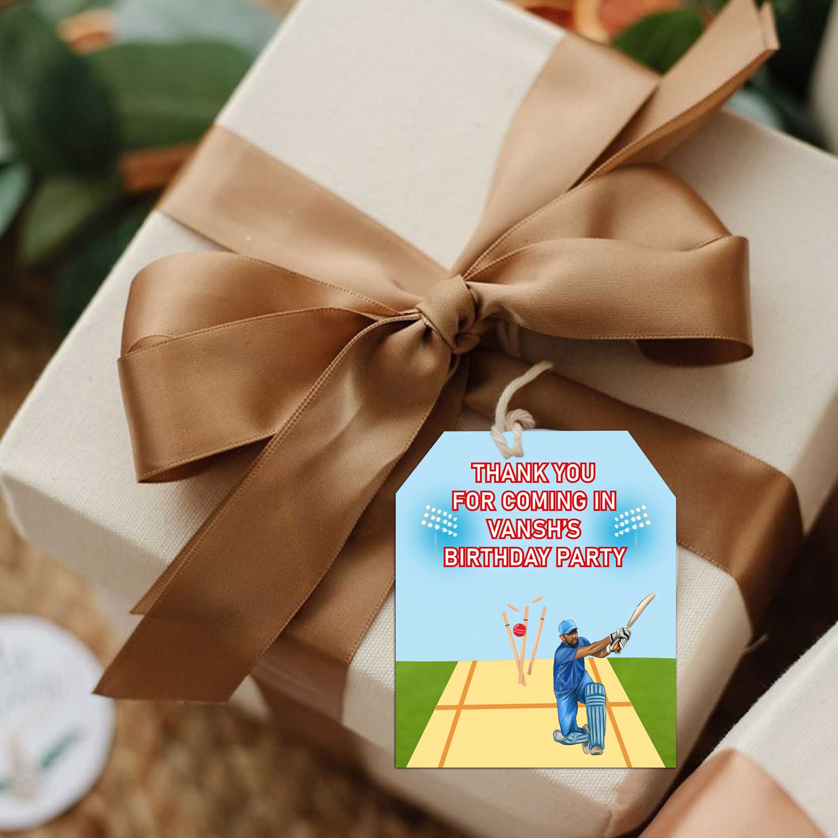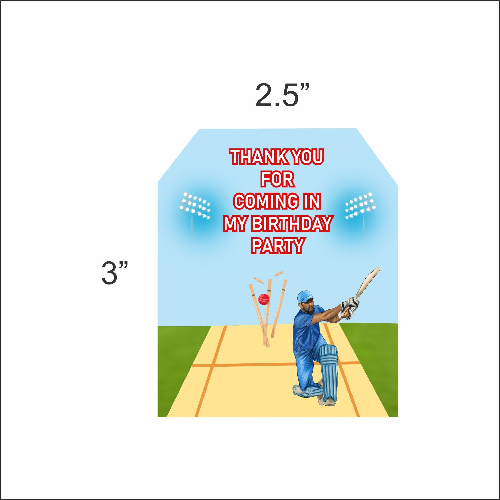 - The package includes - 20 Cricket Theme thank you tags and a ribbon.