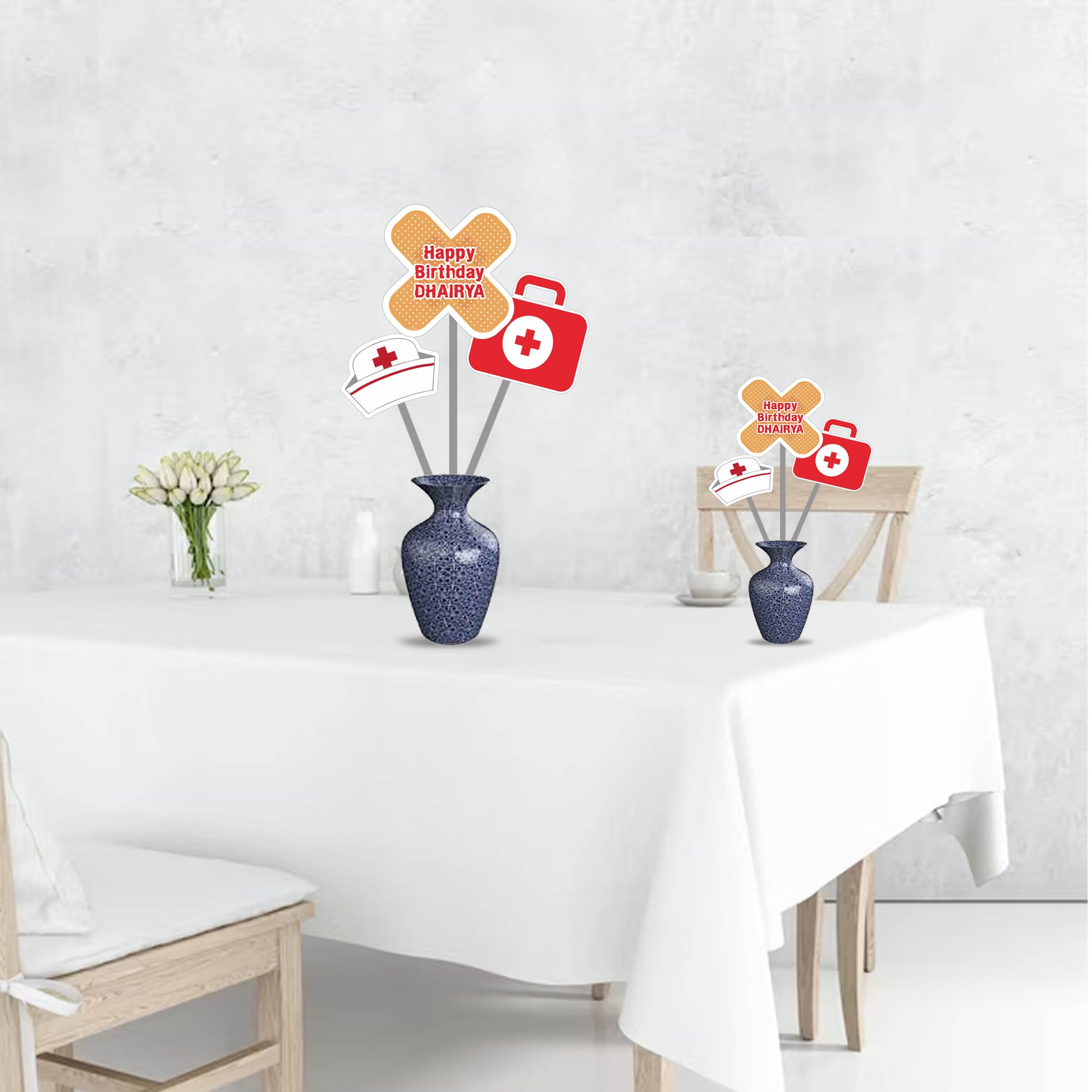 - Create easy centerpieces with our Doctor Theme Party DIY Table Toppers, specially designed in 3 different designs.