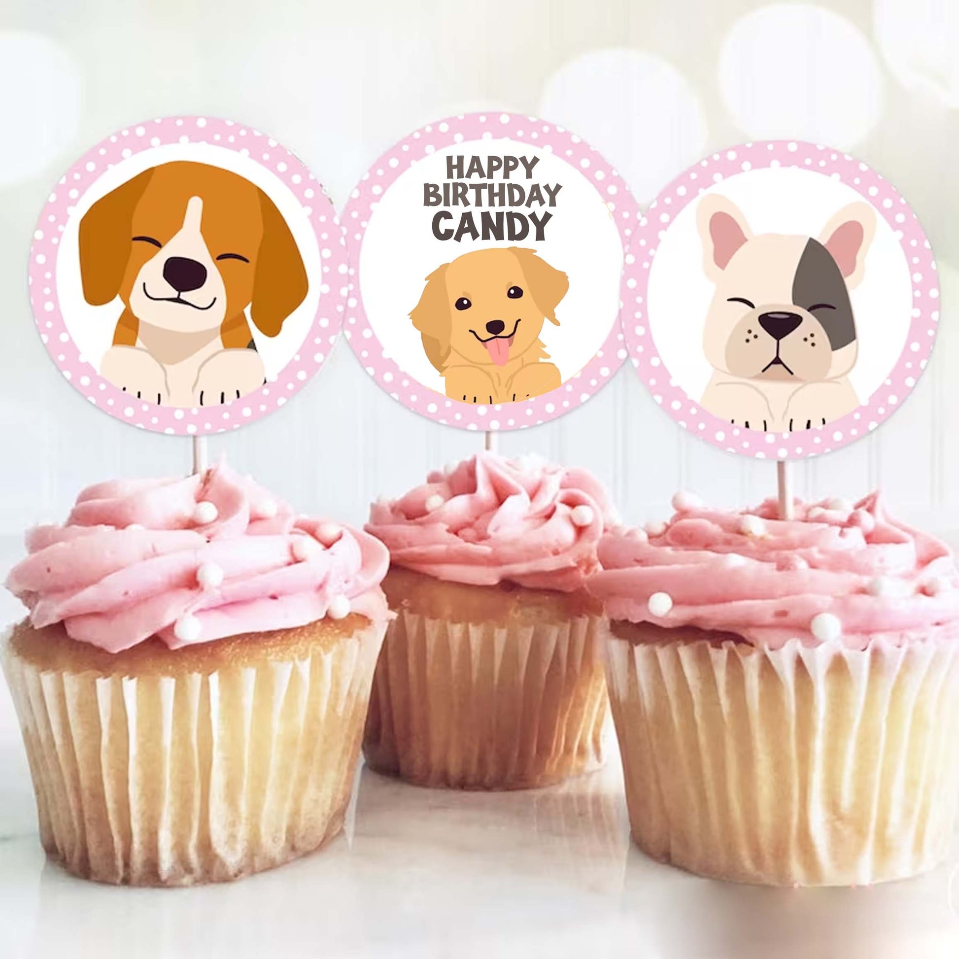 - Package Includes-12 Dog Theme Cupcake Toppers in 4 Different Designs. Sticks and glue dot included to assemble.
