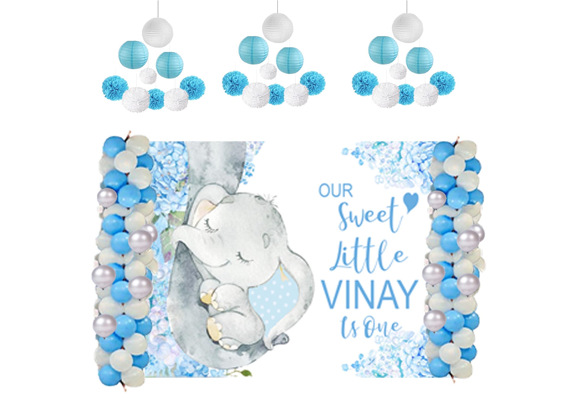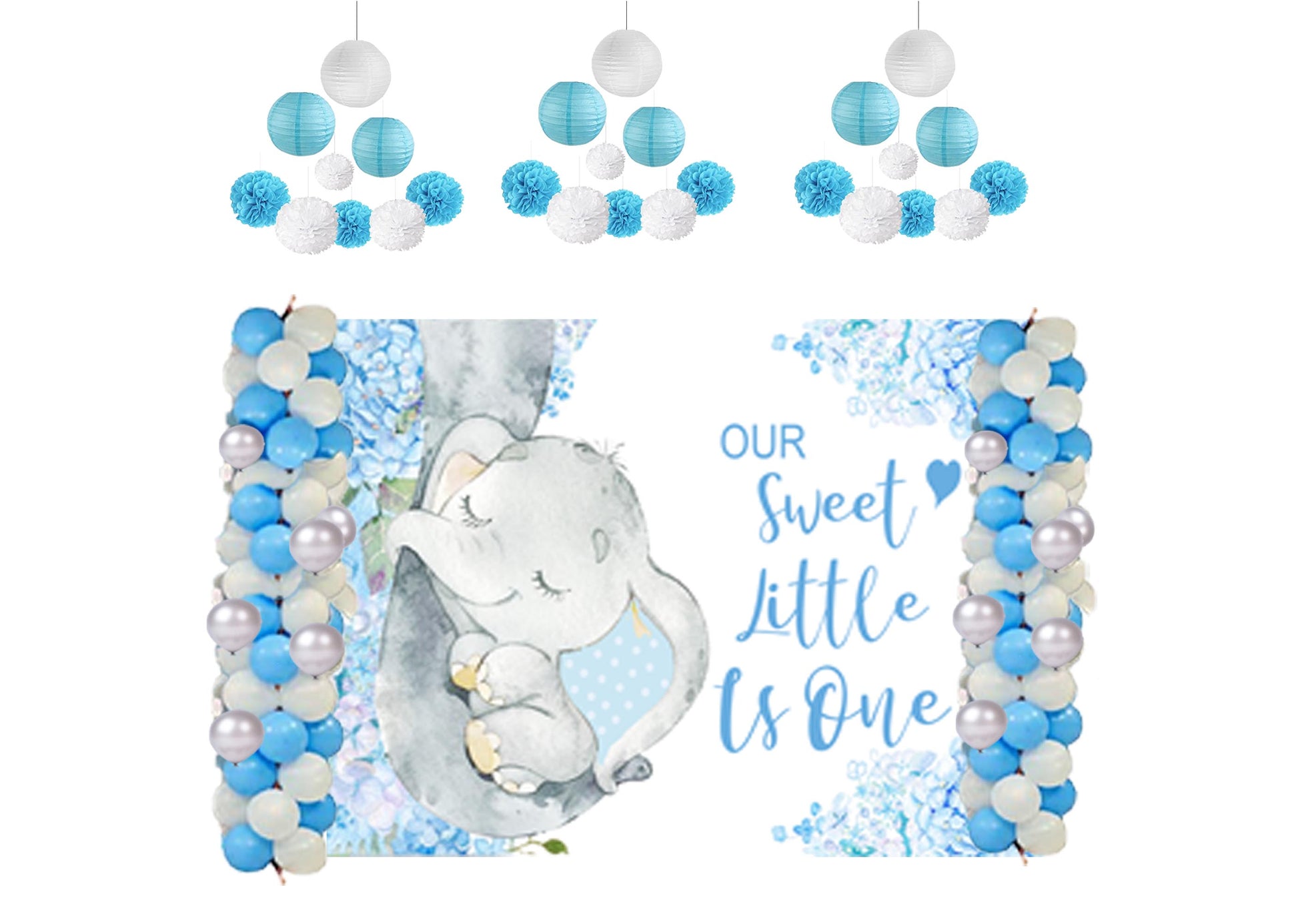 - Package includes - Backdrop-flex material light and thin, Balloons- 60 pcs Metallic 20 pc each Sky Blue, Silver And White and six pc Pompom (2 each Silver, White and Sky Blue) and six pc paper Lantern ((3 each Sky Blue and white).All of the kits are useful for Birthday party.