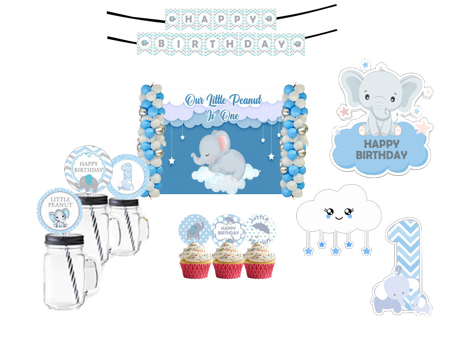 Elephant Theme Birthday Party Combo Kit with Backdrop & Decorations