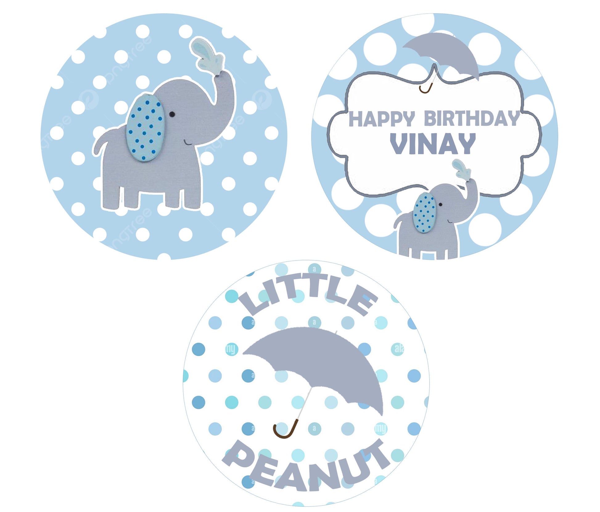 Elephant Theme Cup Cake Topper specially designed with three different designs.