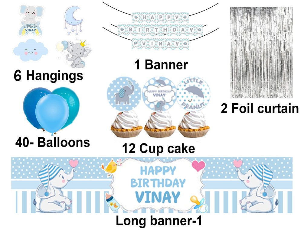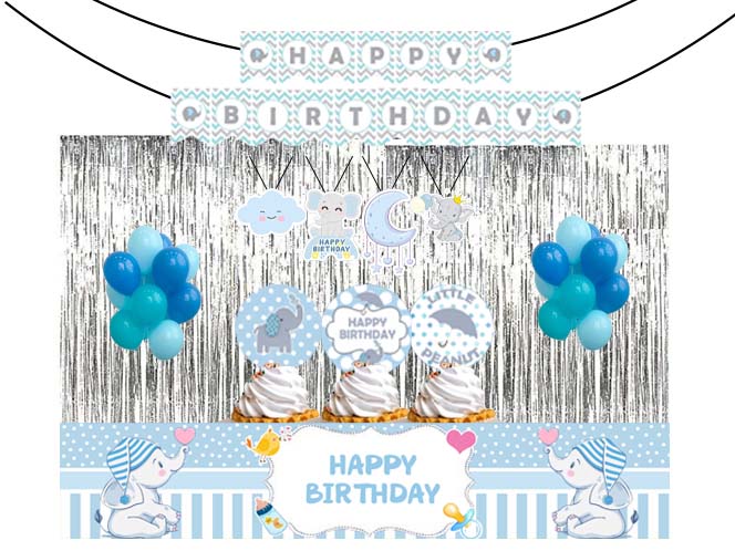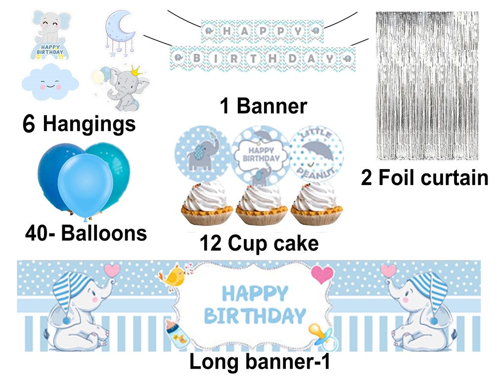 - Package Includes - 1 happy birthday letter banner, 6 pcs Swirls hangings,2 pcs Silver Foil Fringe Shiny Curtain, 40 pcs Latex Balloons-Dark Blue, Light Blue, Sky Blue, 12 cupcake topper and long banner. All of the kits are useful for Birthday Party decorations.