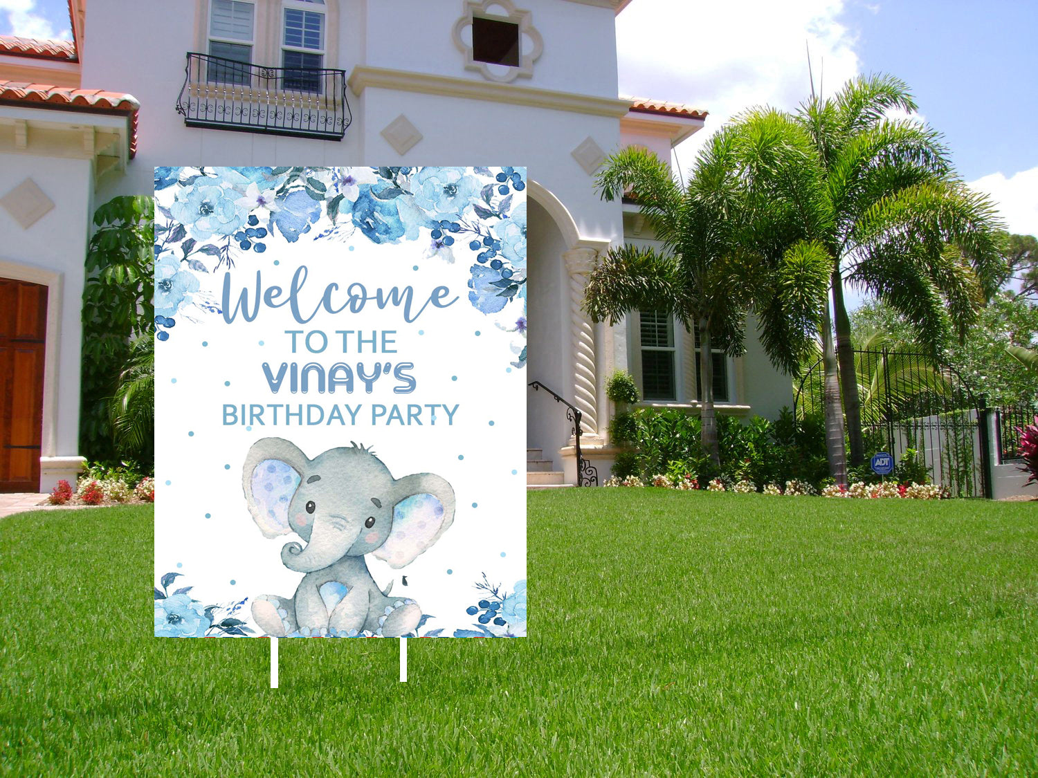 The Elephant theme Welcome board sign is ideal for any home location or outside space. Welcome your friends and family members with a stunning welcome birthday party board.