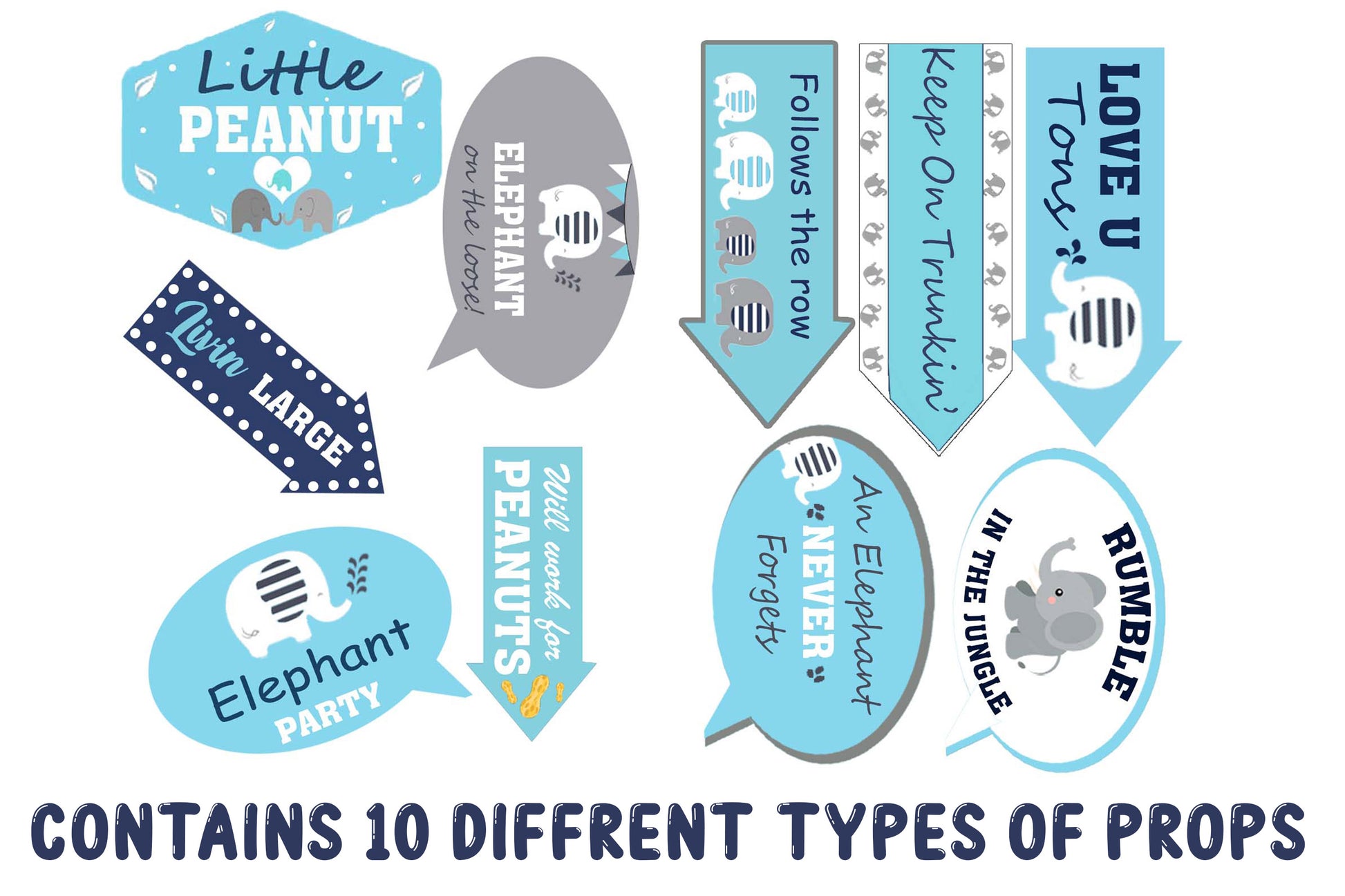 - Elephant Theme photo prop pack accompanies 10 pieces and will add fun for kids and adults. Take entertaining party photos while making memories with these photo booth props. Everyone will adore the fun photographs they will make with these excellent props.