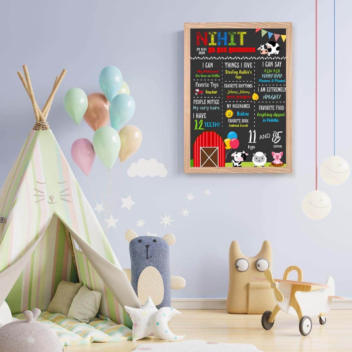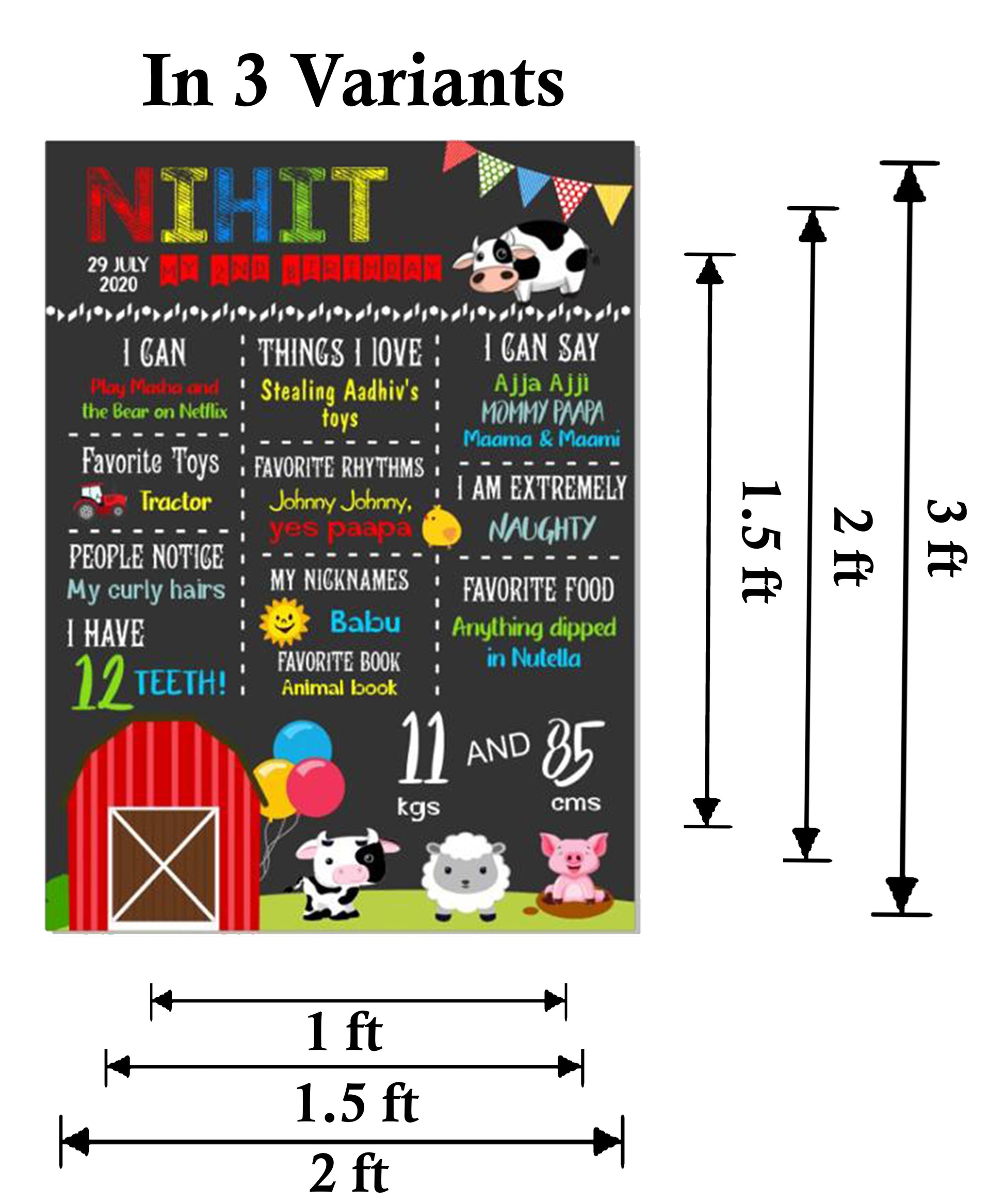 Perfect Size : The birthday chalkboard sign comes in 3 variants which is the perfect to hold and customize child details. Enough space to write details like name, age, weight, height, favorite toys and food. Choose size according to your requirements.
