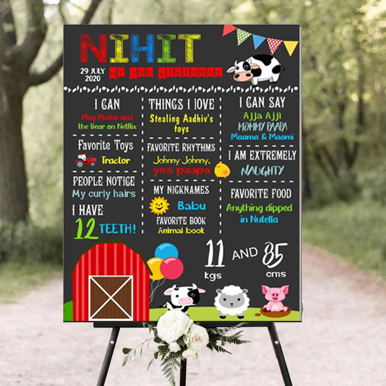 Farm Animals Customized Chalkboard/Milestone Board for Kids Birthday Party