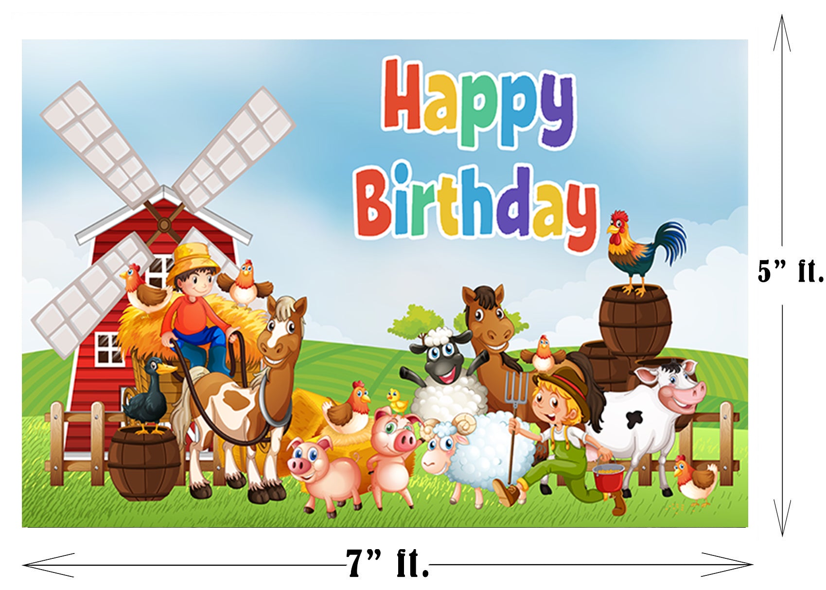 - Size & Package: (Width) x (Height) 1pc Farm animal Birthday Party Backdrop. To facilitate transport and packaging, items are sent folded.