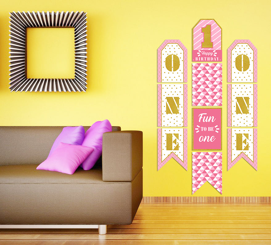 One Is Fun First Birthday Paper Door Banner for Wall Decoration