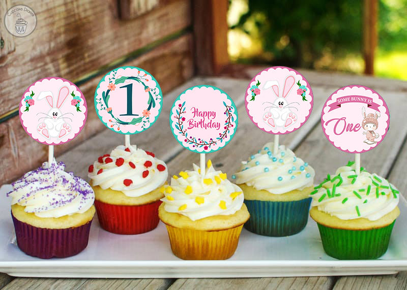 Some Bunny Is One Birthday Party Cupcake Toppers for Decoration