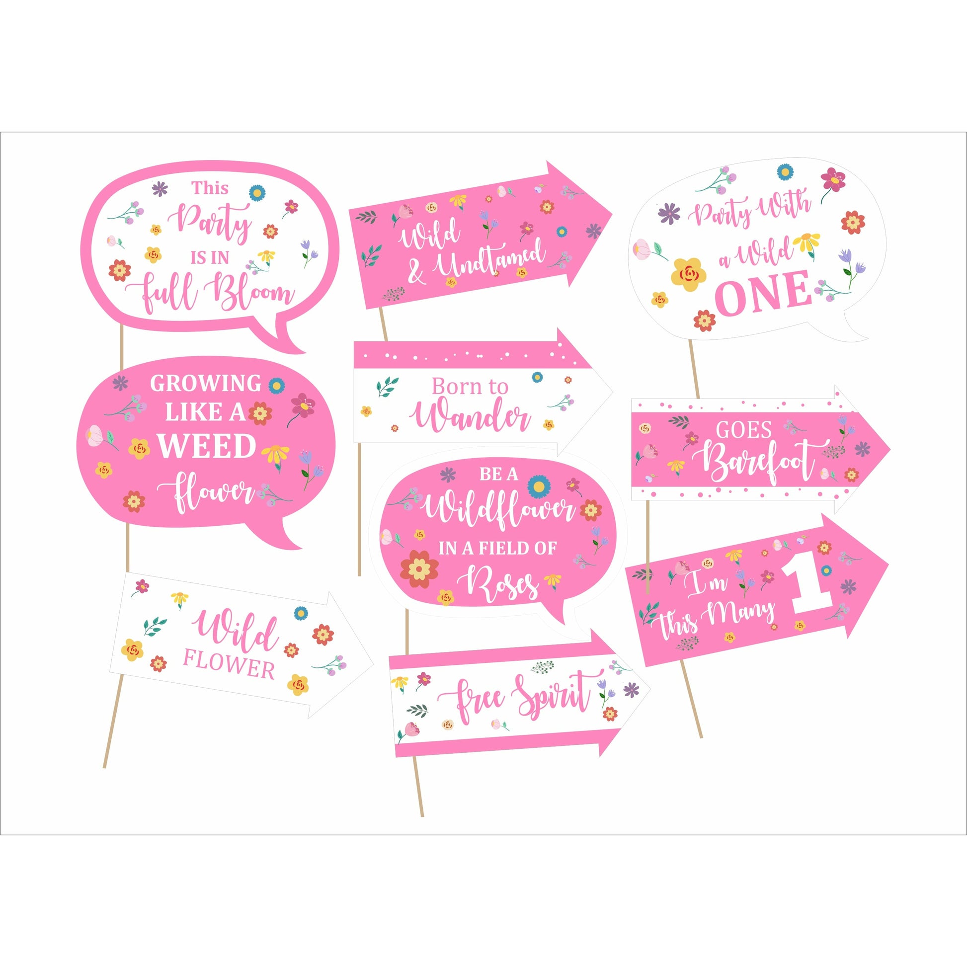 - First Birthday Theme photo prop pack accompanies ten pieces and will add fun for kids and adults. Take entertaining party photos while making memories with these photo booth props. Everyone will adore the fun photographs they will make with these excellent props.