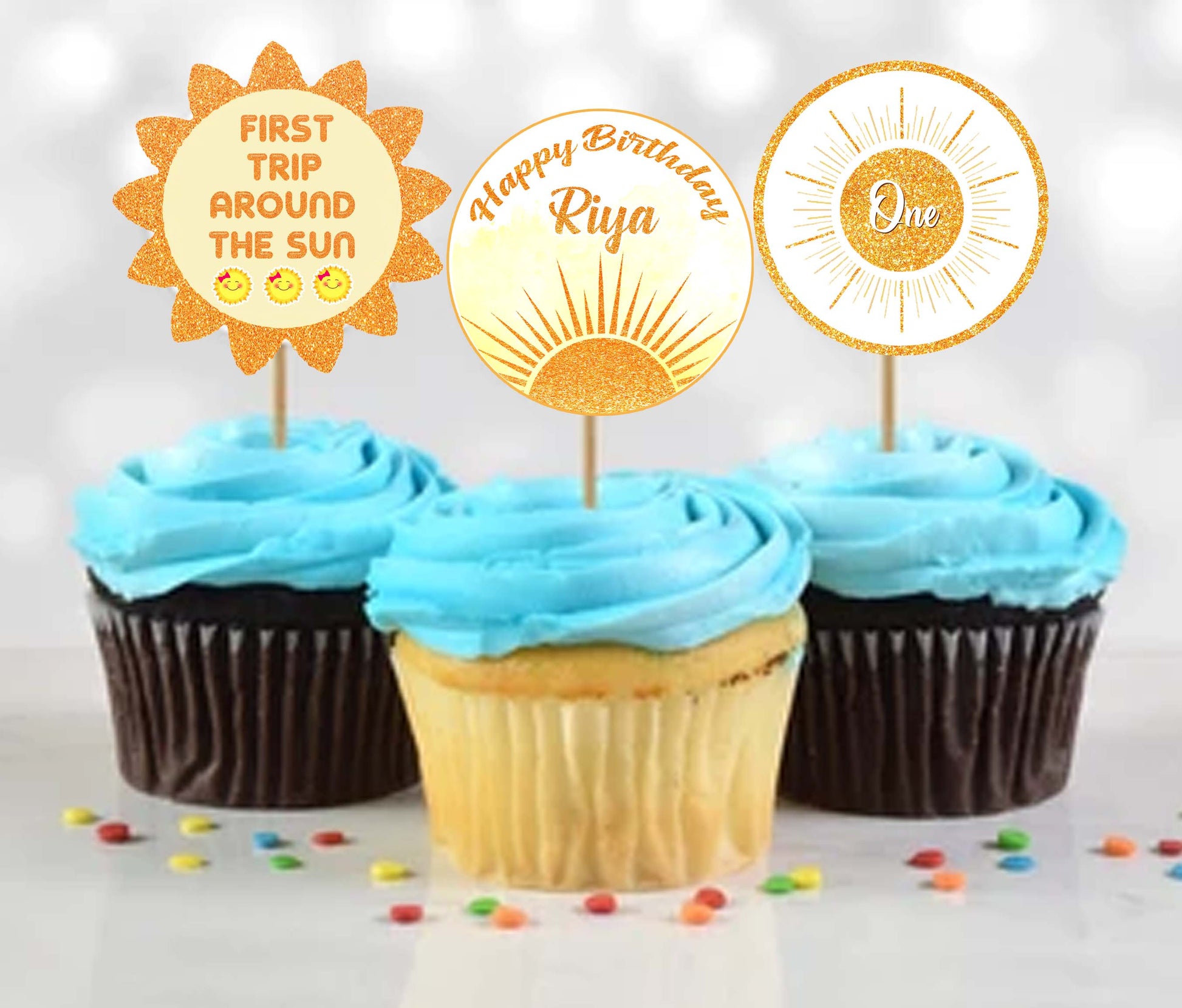 First Trip Around the Sun Theme Cup Cake Topper specially designed with three different designs.