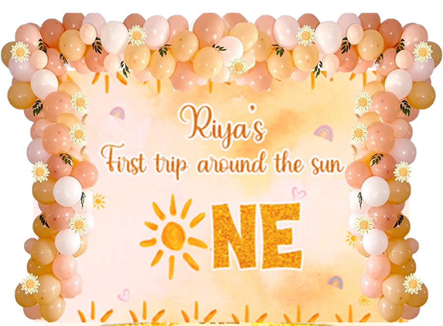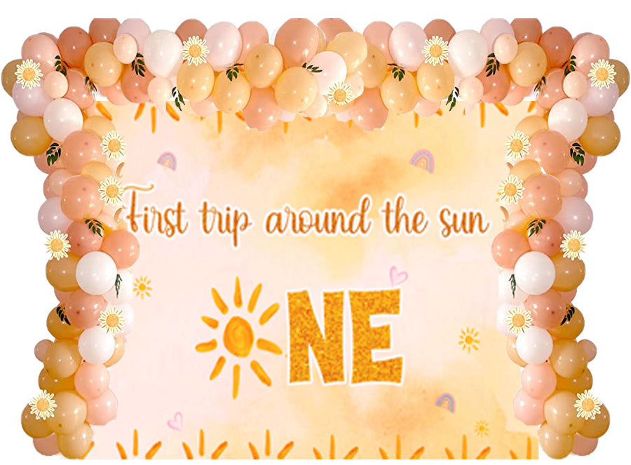 First Trip Around the Sun Theme Birthday Party Decoration kit with Backdrop & Balloons
