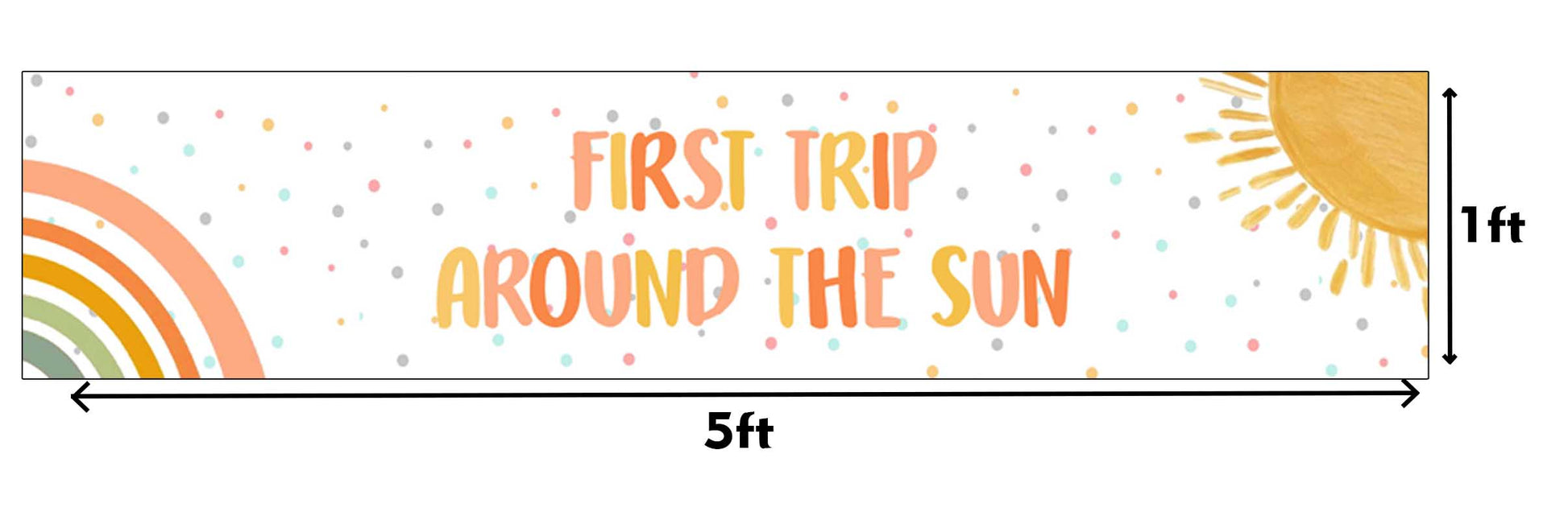 How to use: Hang First Trip Around the Sun long banner in front of food, cake table, or any space to make the birthday celebration best.