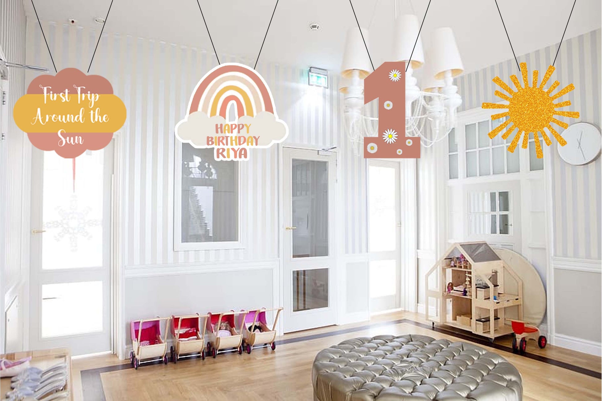 - First Trip Around the Sun Theme hangings will add a beautiful touch to your kid's birthday party.