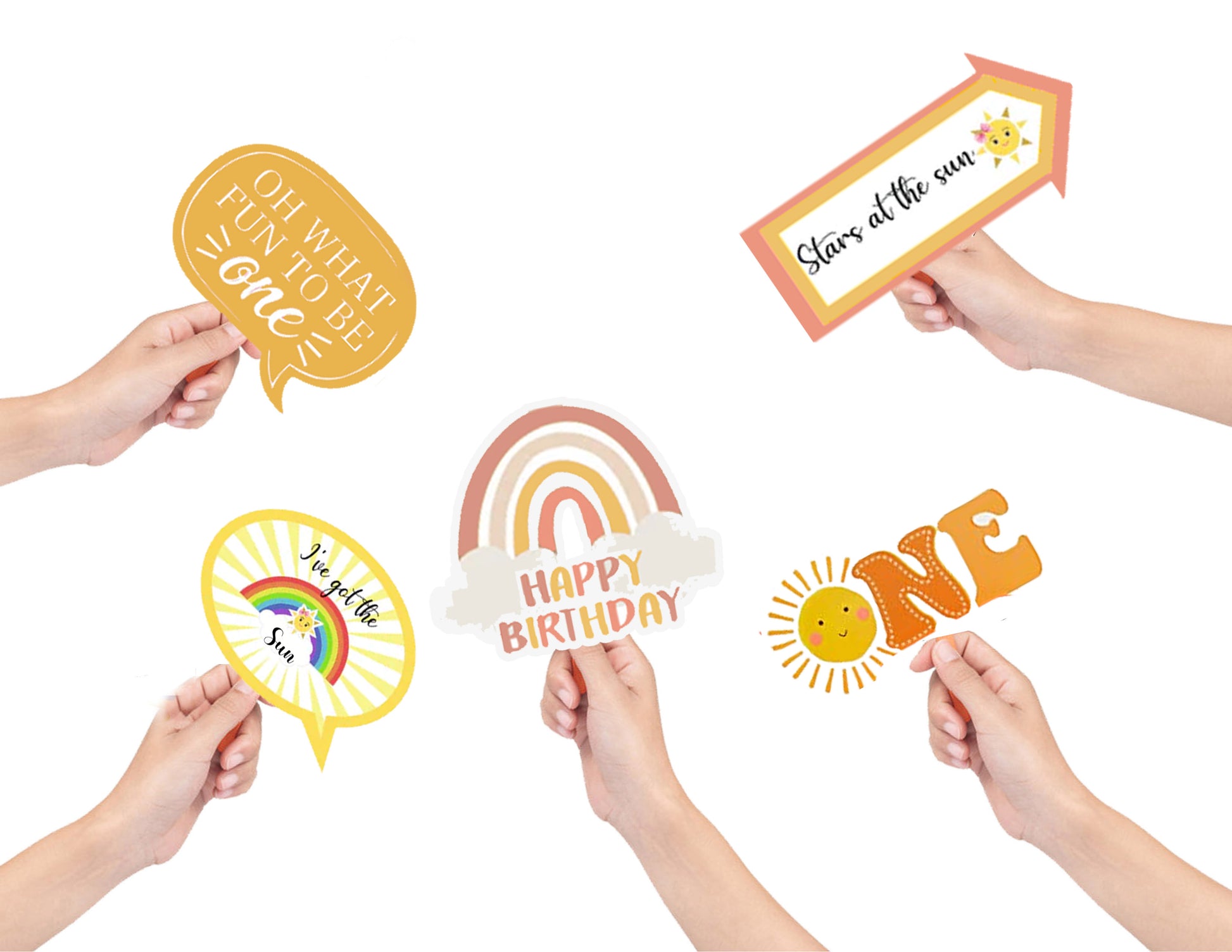 - Material: - First Trip Around the Sun Theme photo booth props are printed on thick cardstock paper.