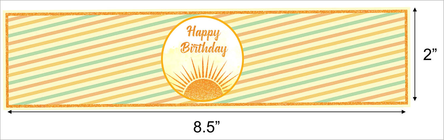 Size: Each First Trip Around the Sun sticker size is 8" wide x 2.5" tall, ideal for any refreshment bottle under 8" in the distance across.