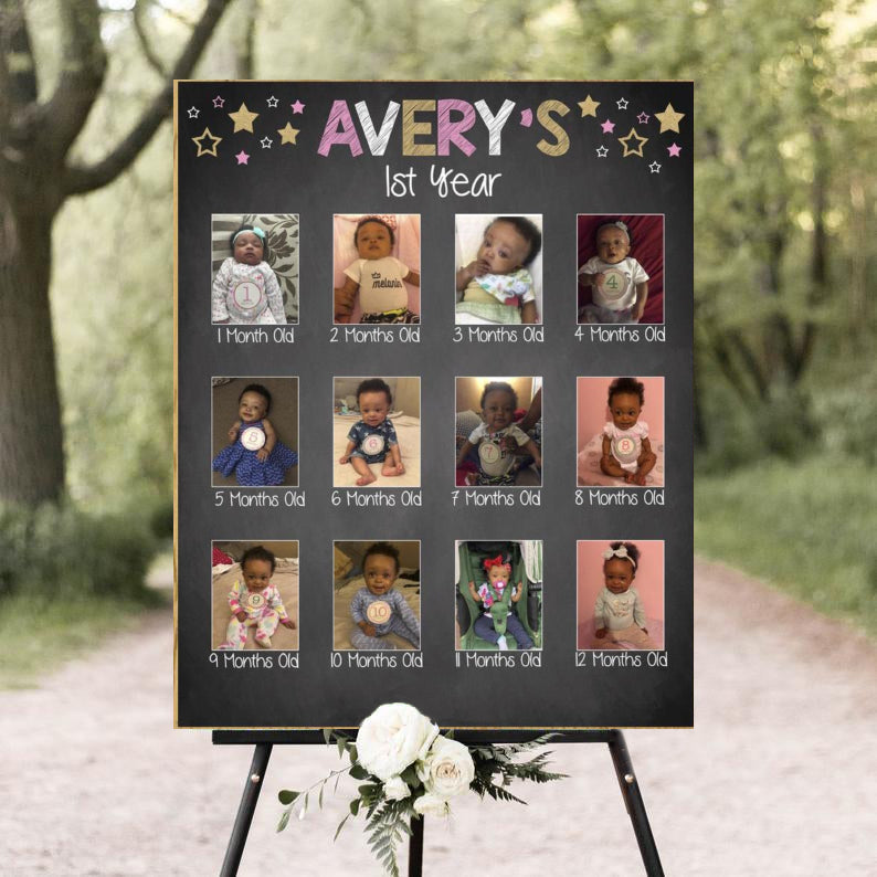 - Best choice for Birthday: Include 12 month photographPerfect Size: The birthday chalkboard sign measures 18”*24”, which is the perfect to hold all months photographs and customize with your child