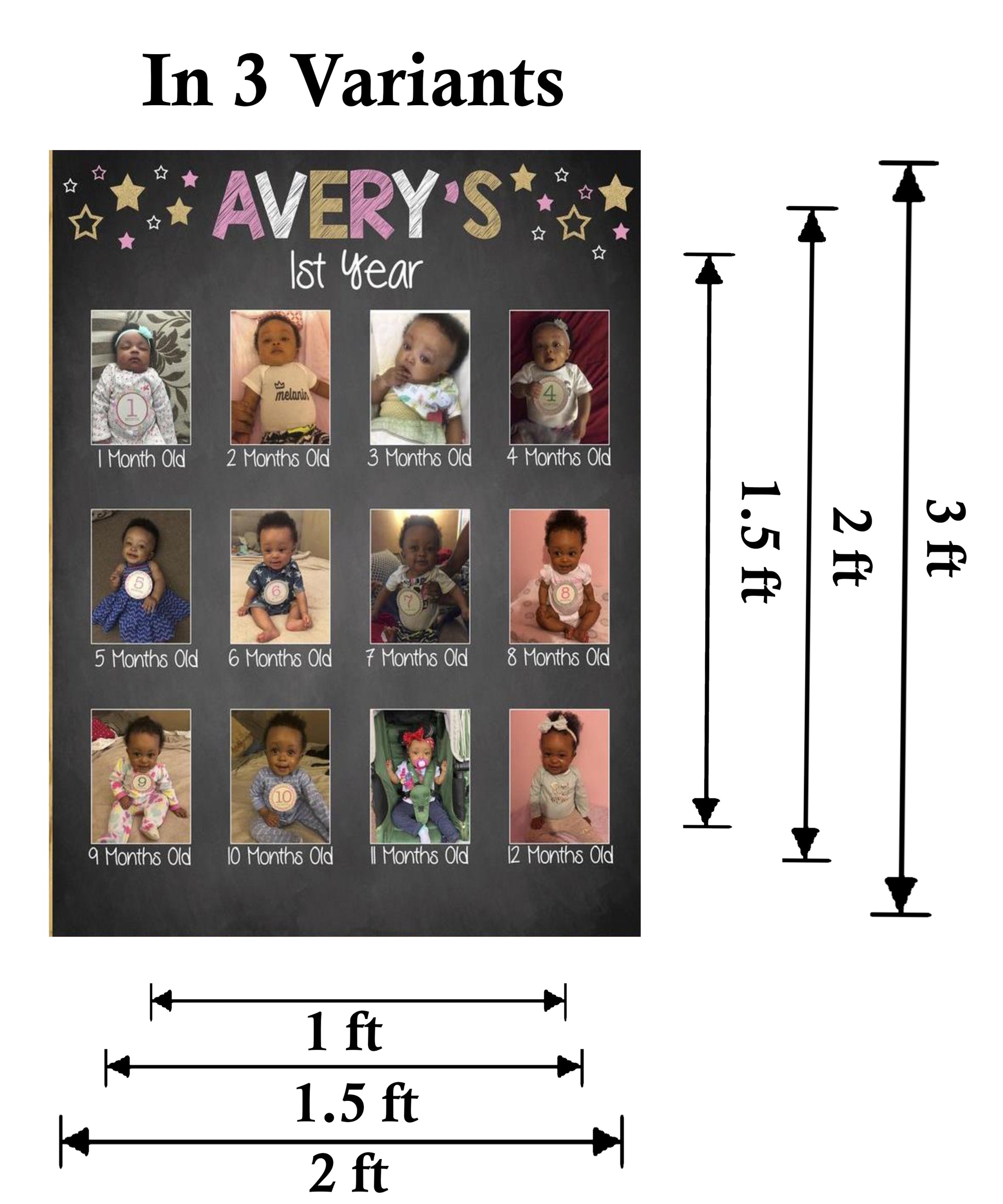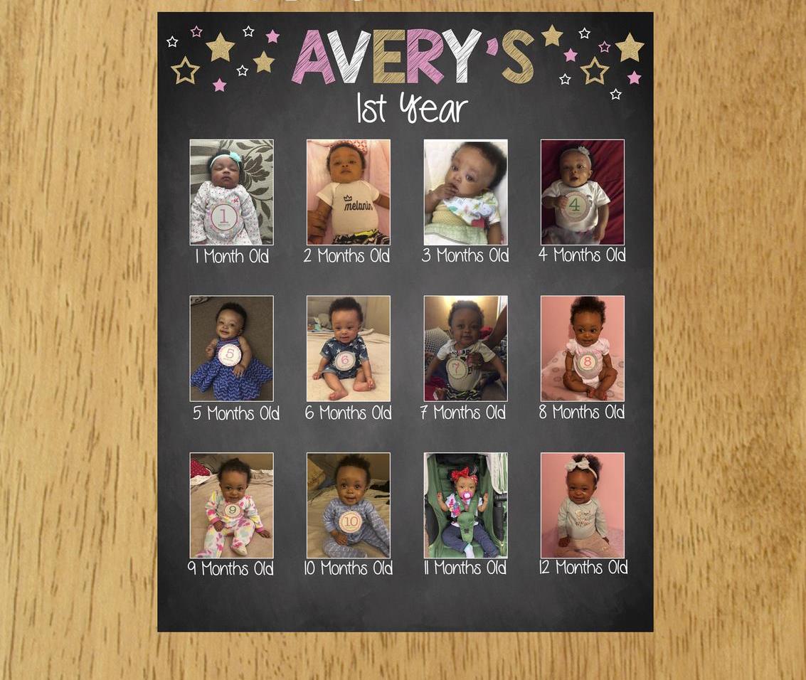 - First 12 months CollageFirst 12 months Collage-Popular Birthday Decoration: The birthday collage is made of high quality Vinyl Print material and pasted on 3mm sunboard.