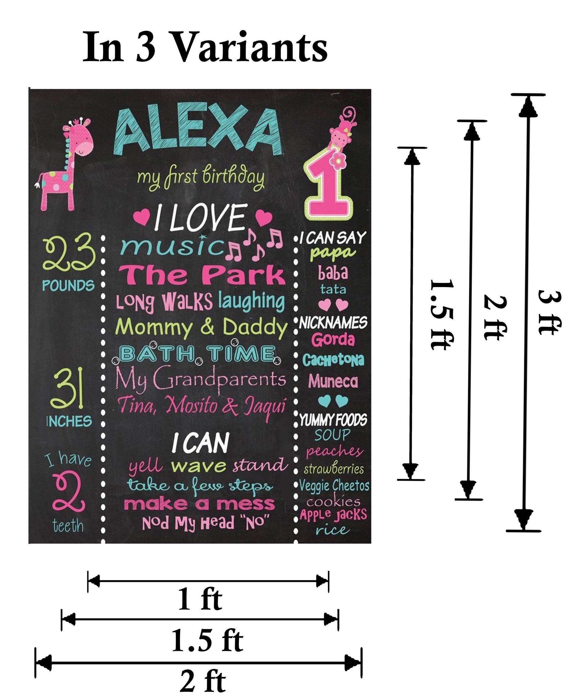 Perfect Size : The birthday chalkboard sign comes in 2 variants which is the perfect to hold and customize child details. Enough space to write details like name, age, weight, height, favorite toys and food. Choose size according to your requirements.